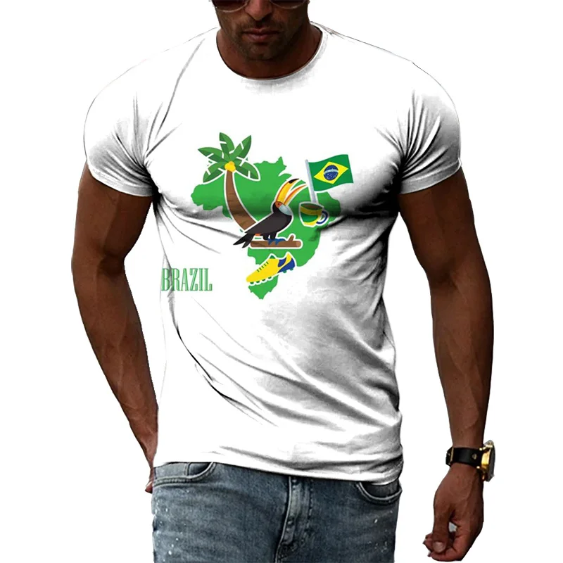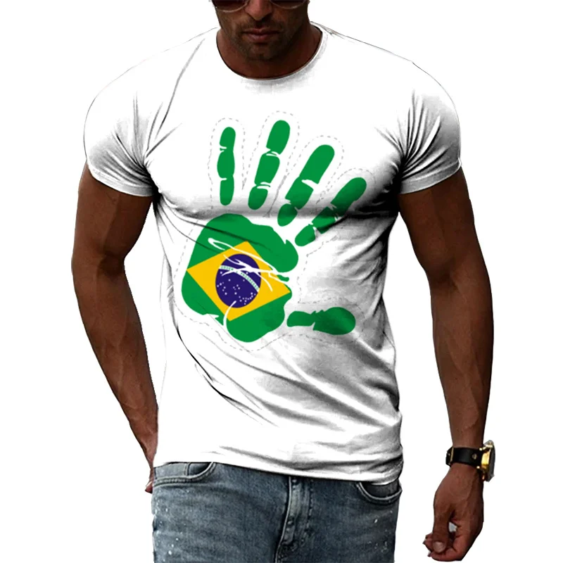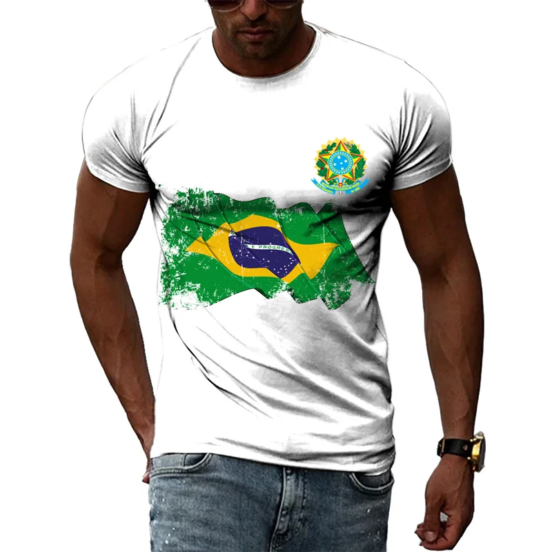 T-shirt grafica brasiliana moda estate bandiera brasiliana emblema stampato manica corta maglietta casual allentata o collo maglietta oversize da uomo