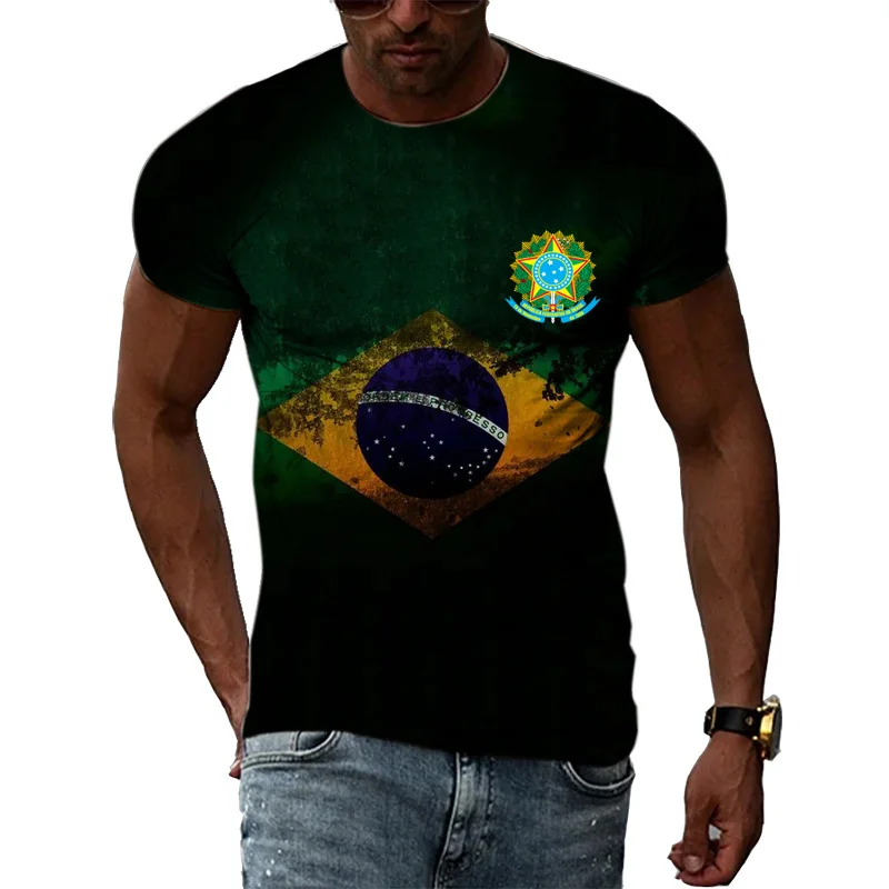 T-shirt grafica brasiliana moda estate bandiera brasiliana emblema stampato manica corta maglietta casual allentata o collo maglietta oversize da uomo