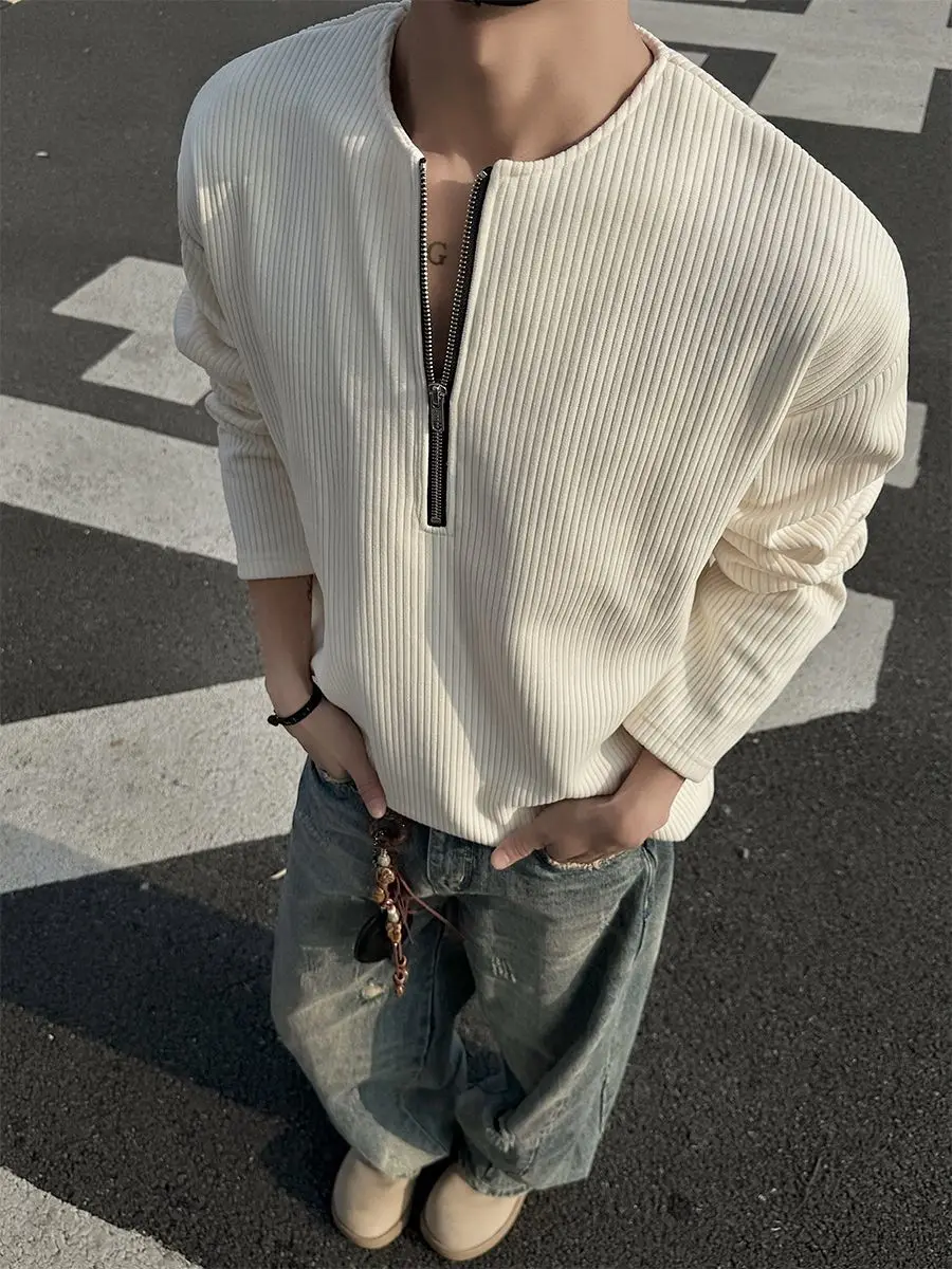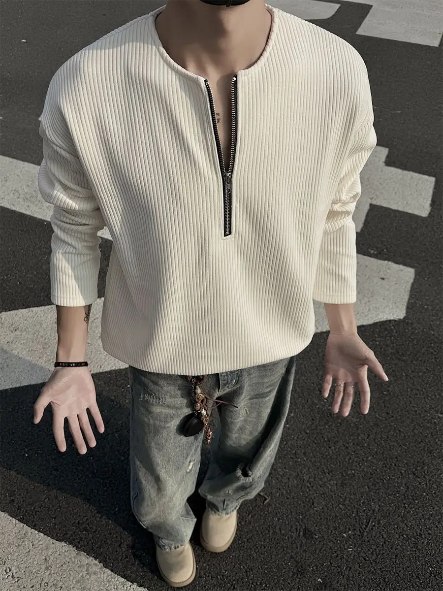 T-shirt Henley americana con mezza zip da uomo primavera autunno manica lunga intimo resistente felpa con cappuccio