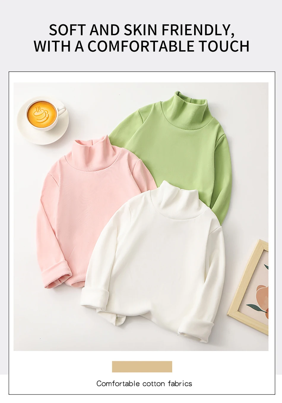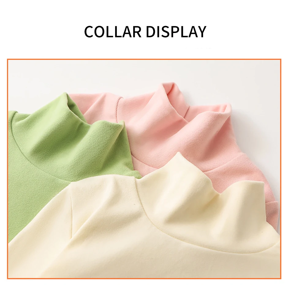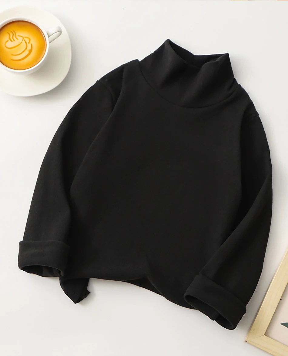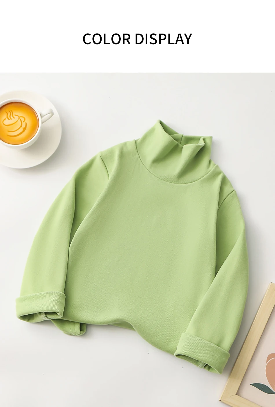 Nome: T-shirt morbida e confortevole per bambini a maniche lunghe in tinta unita con collo mezzo alto, adatta per l’autunno e l’inverno, stagione fredda