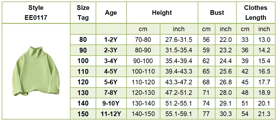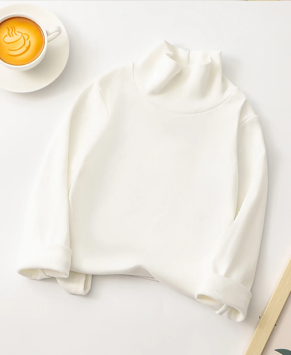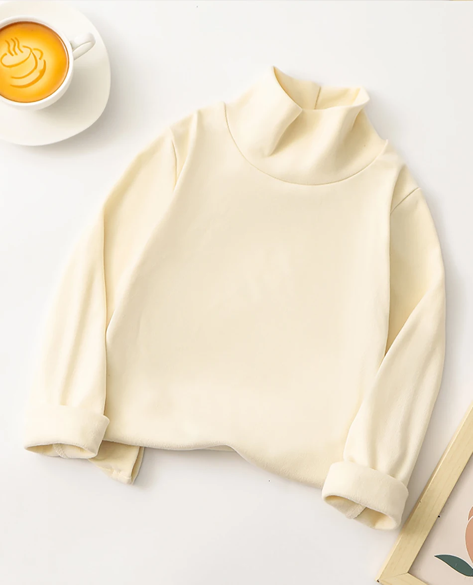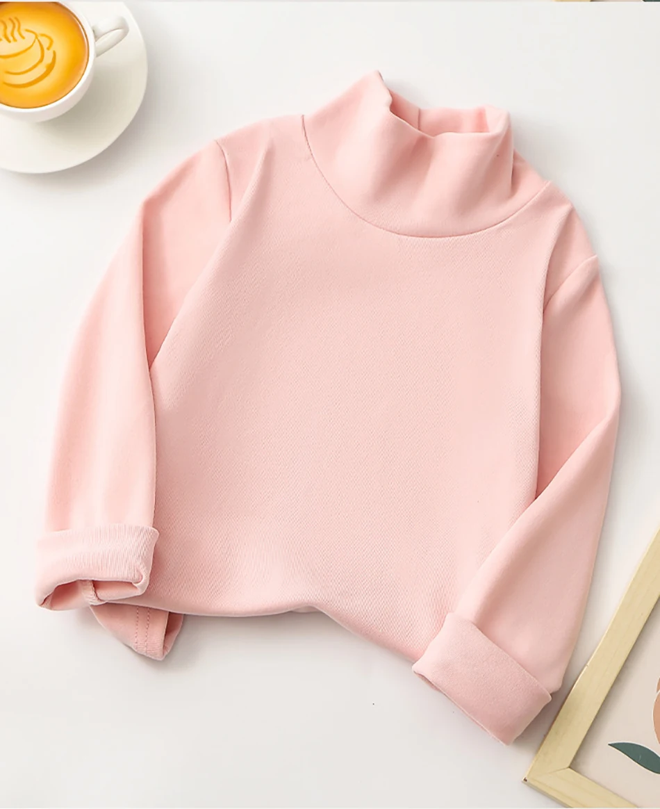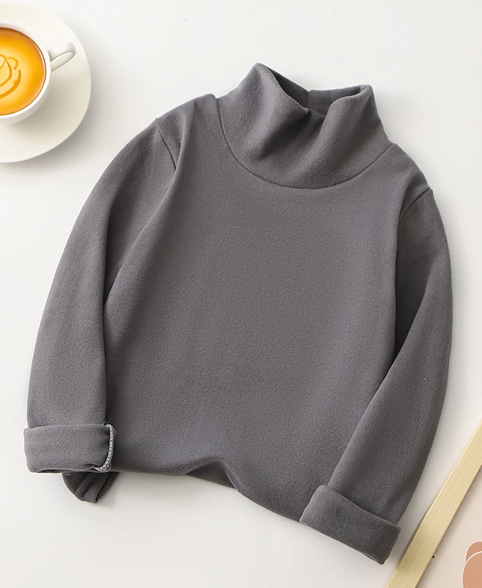 Nome: T-shirt morbida e confortevole per bambini a maniche lunghe in tinta unita con collo mezzo alto, adatta per l’autunno e l’inverno, stagione fredda