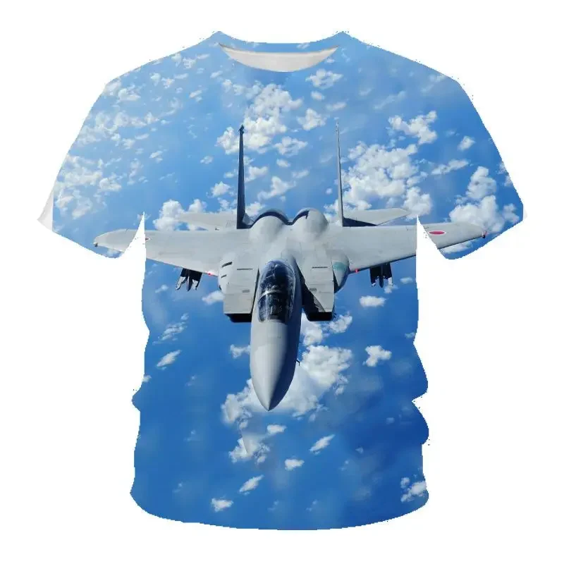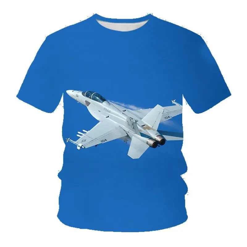T-Shirt Kawaii 3D Print Summer Aircraft Fighter T Shirt Fashion Kids Casual Boys Girls girocollo Tshirt abbigliamento per bambini