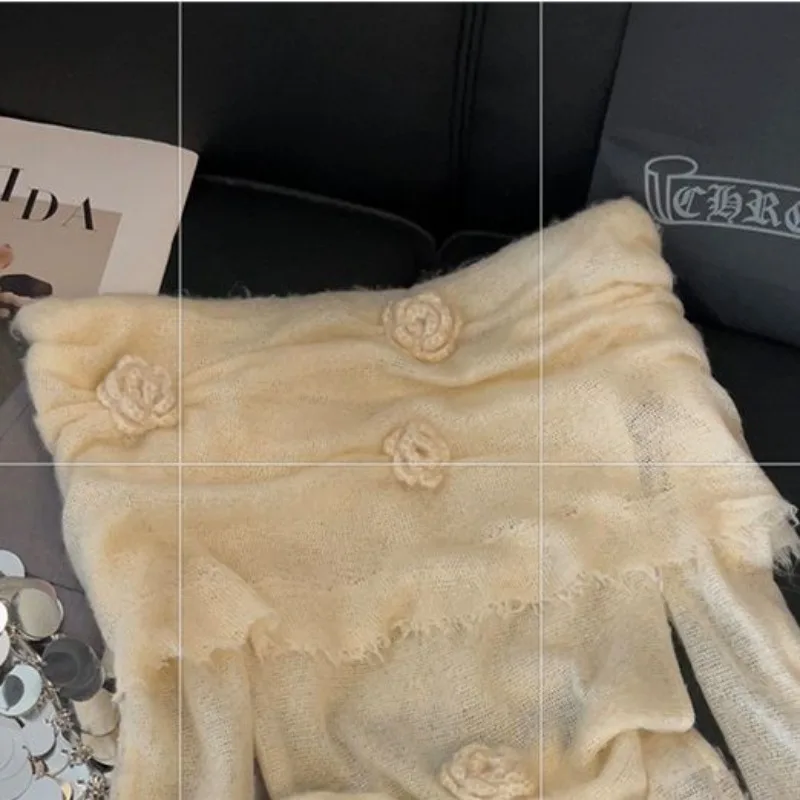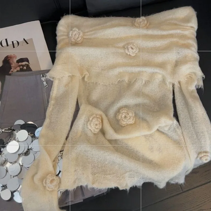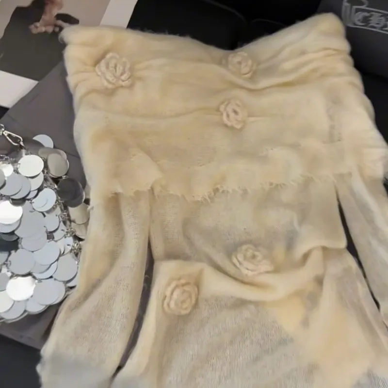T-shirt maglione increspato fiore 3D moda elegante 2025 Top lavorato a maglia per le donne T-shirt dolce casual giapponese Maglieria Sueter