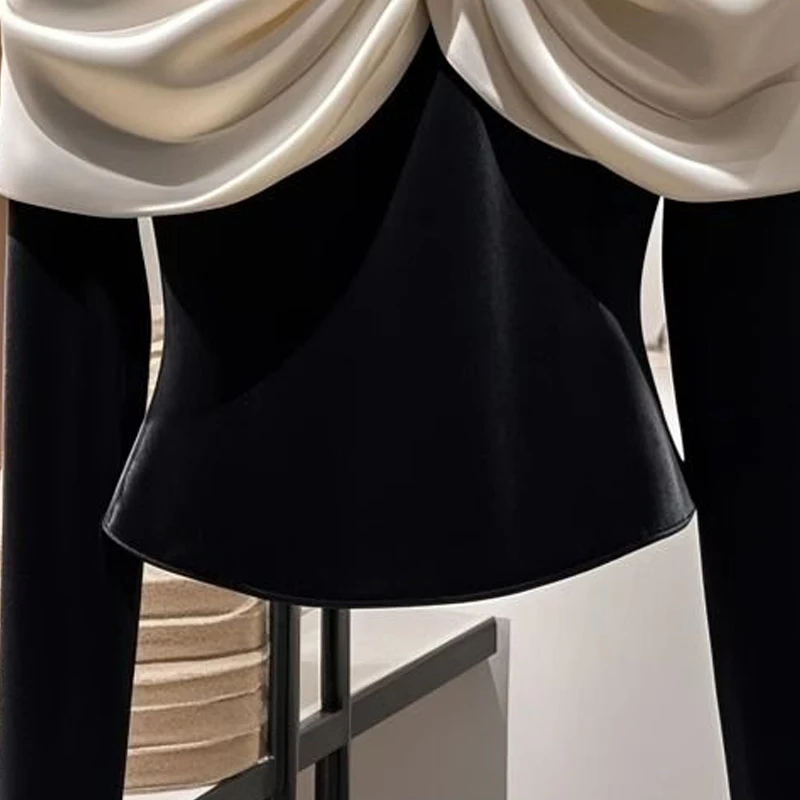 Abiti da donna a maniche lunghe autunnali con avvolgenti sui fianchi Abito da festa vuoto patchwork in pizzo nero Abito attillato a vita alta con scollo a barchetta