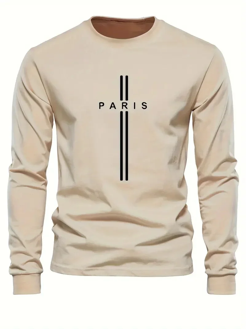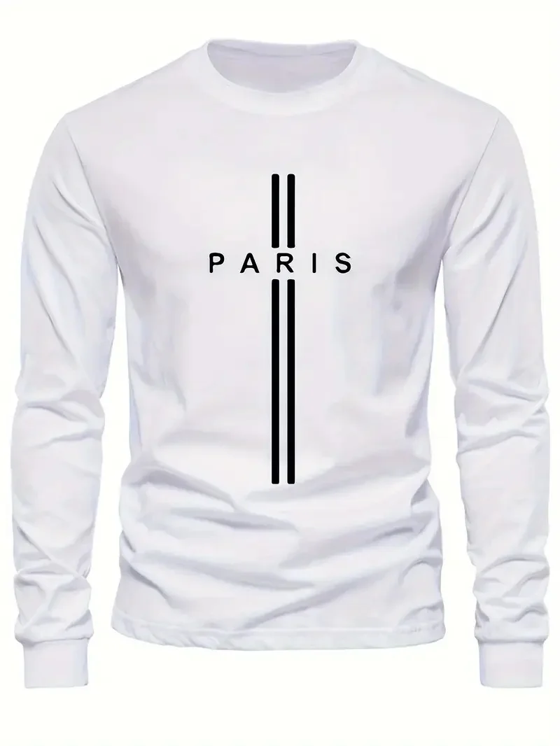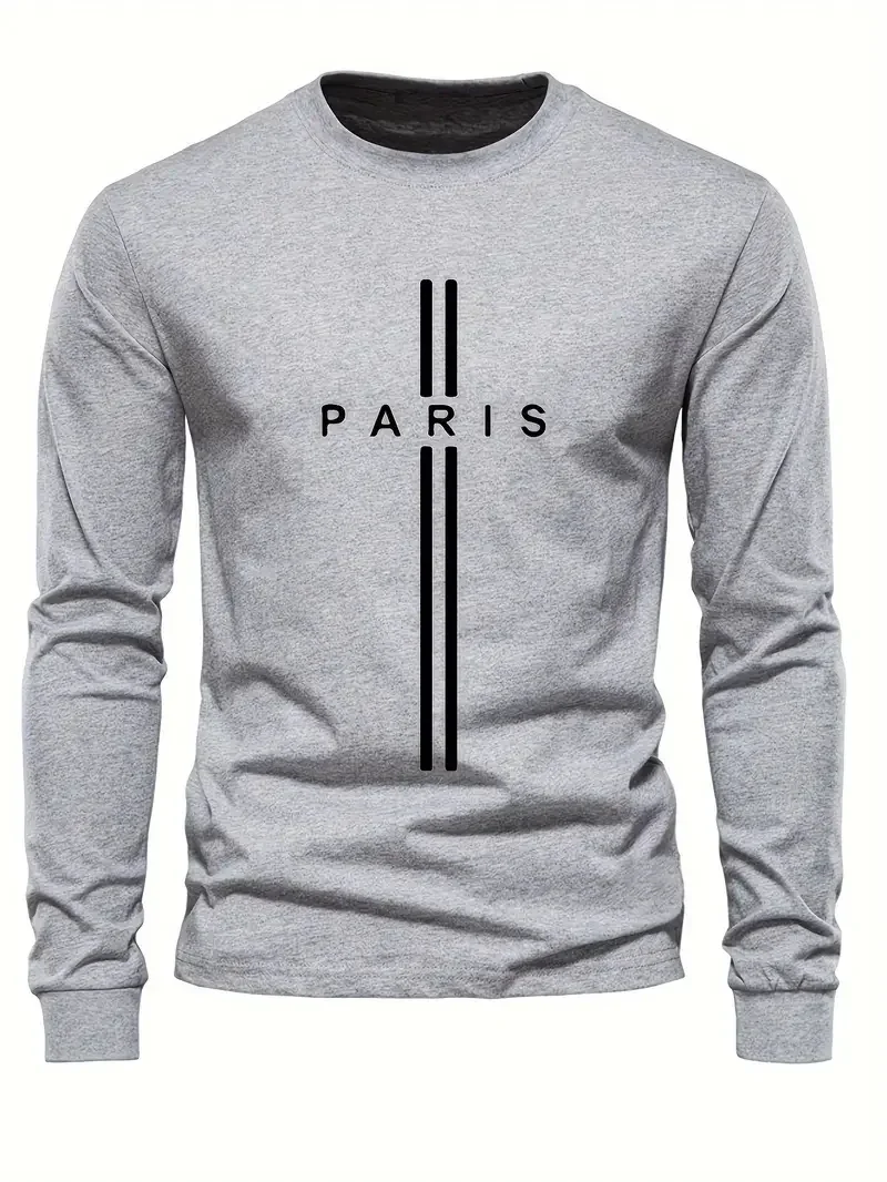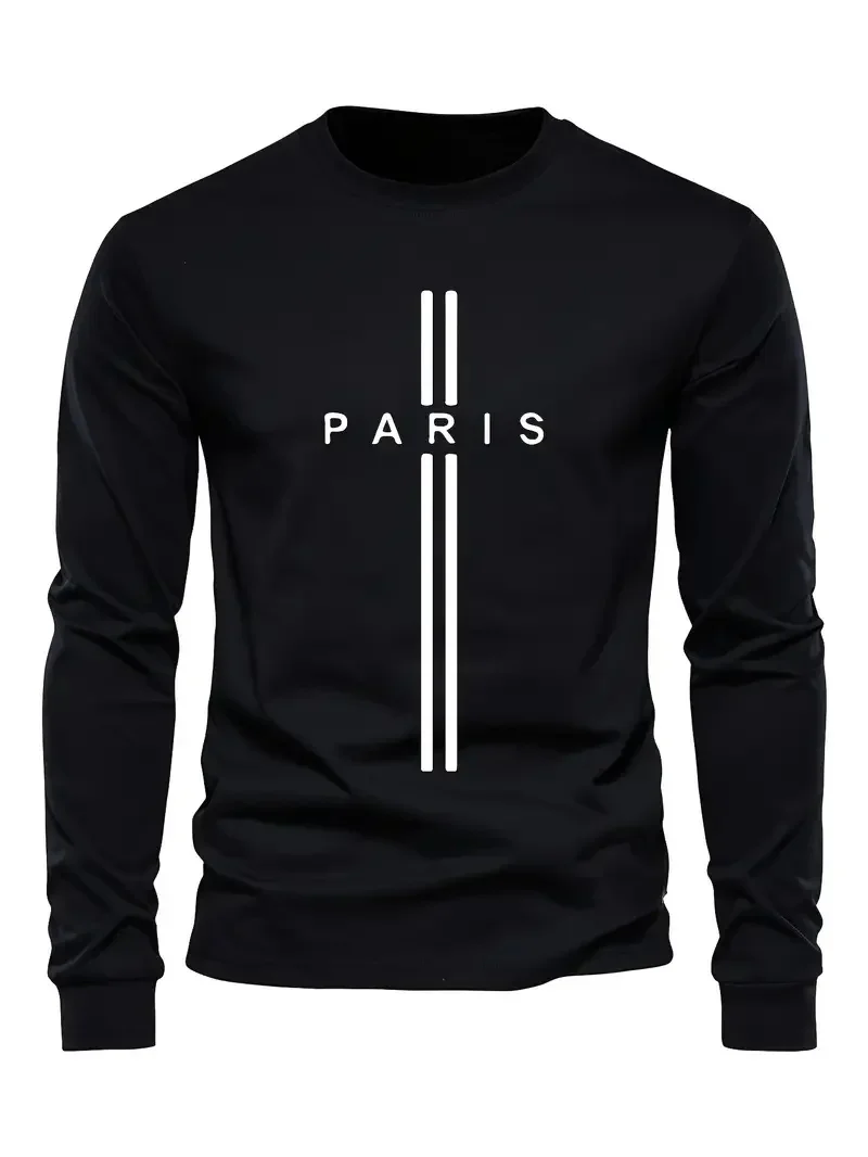 T-shirt oversize allentata sportiva casual autunno e inverno da uomo Top Parigi Pullover stampato in 3D Girocollo T-shirt a maniche lunghe Top