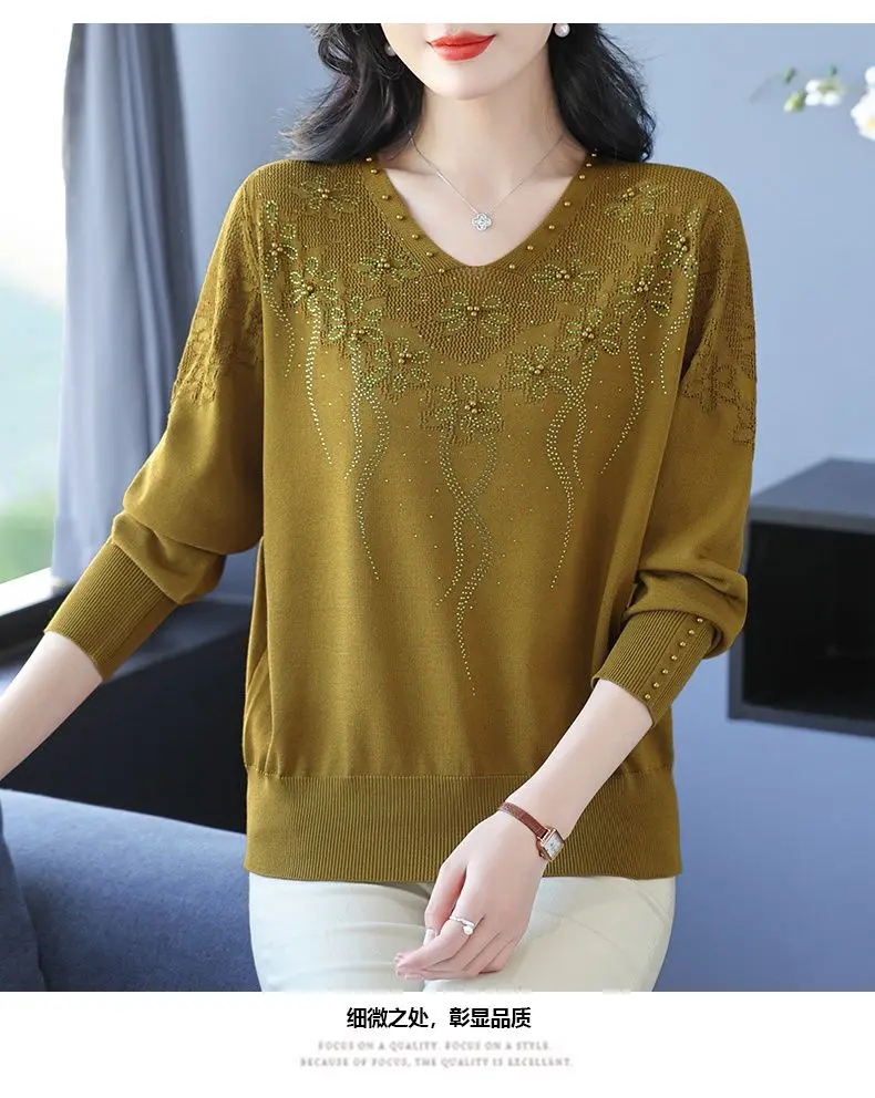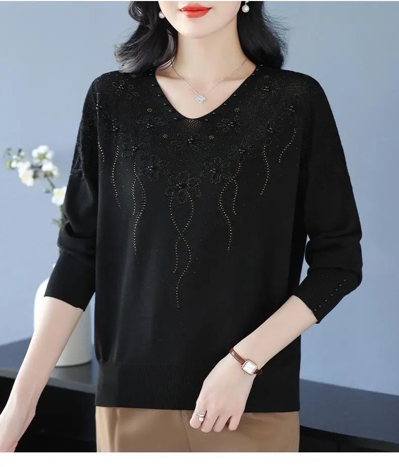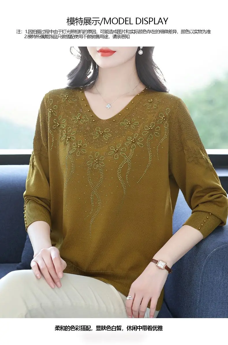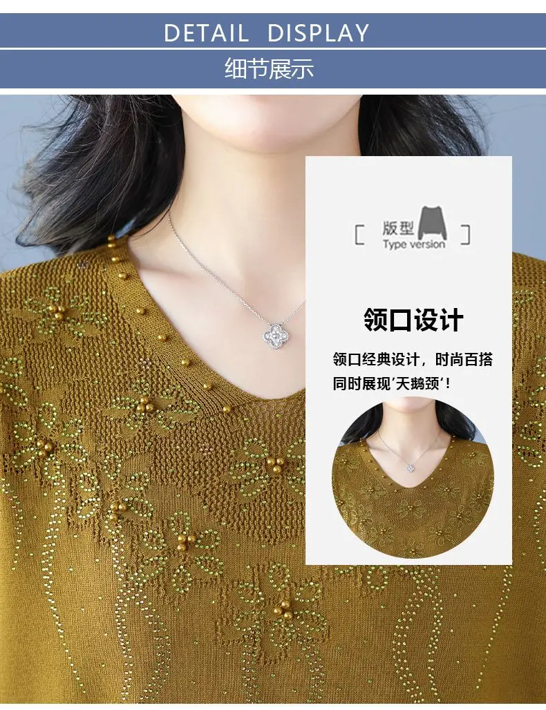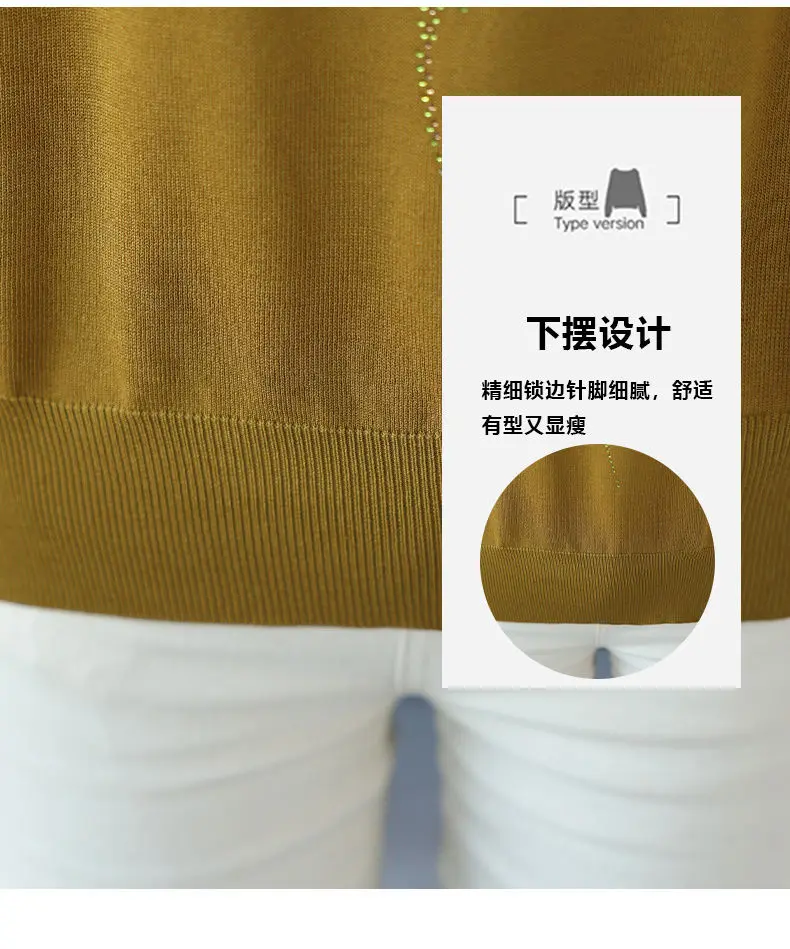 T-shirt sottile in maglia di seta di gelso da donna primavera autunno Bling Bling di fascia alta