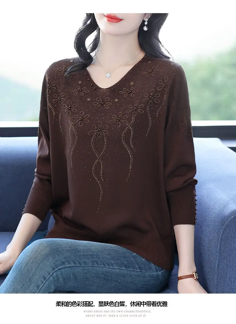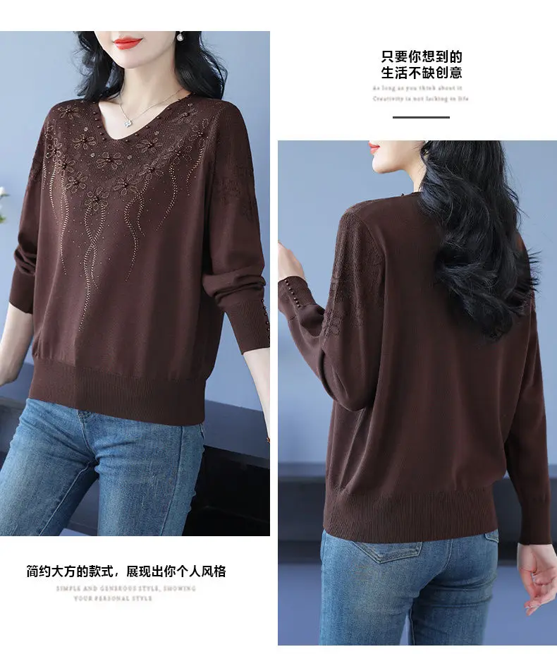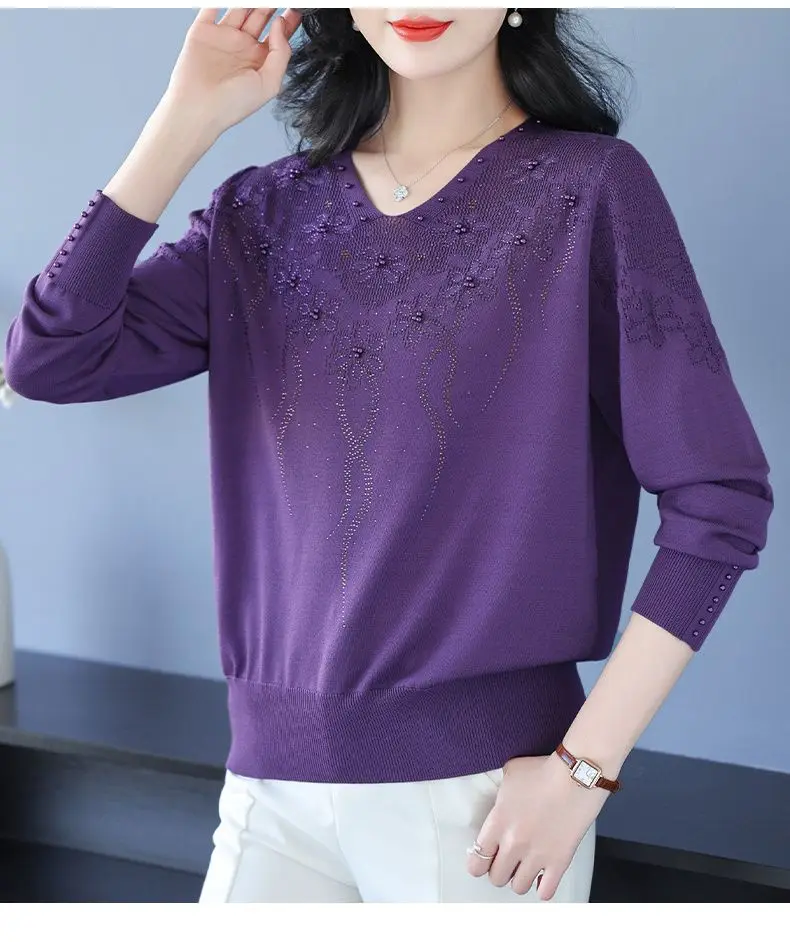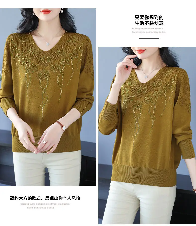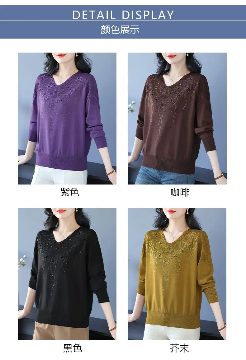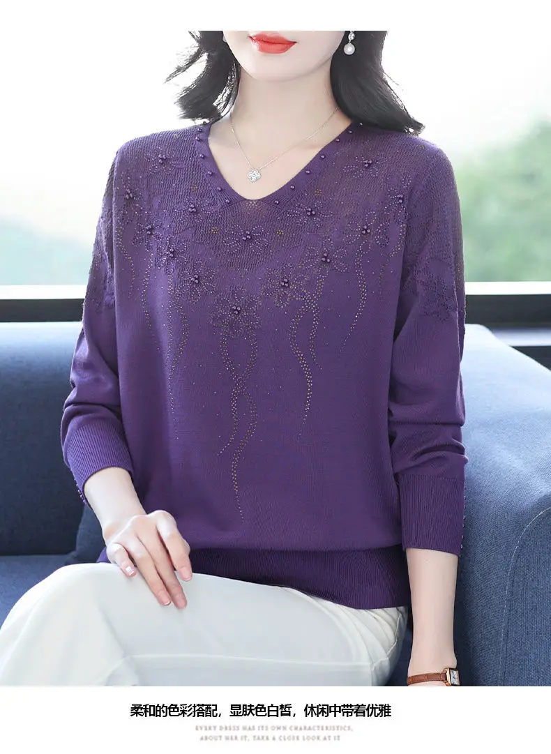 T-shirt sottile in maglia di seta di gelso da donna primavera autunno Bling Bling di fascia alta