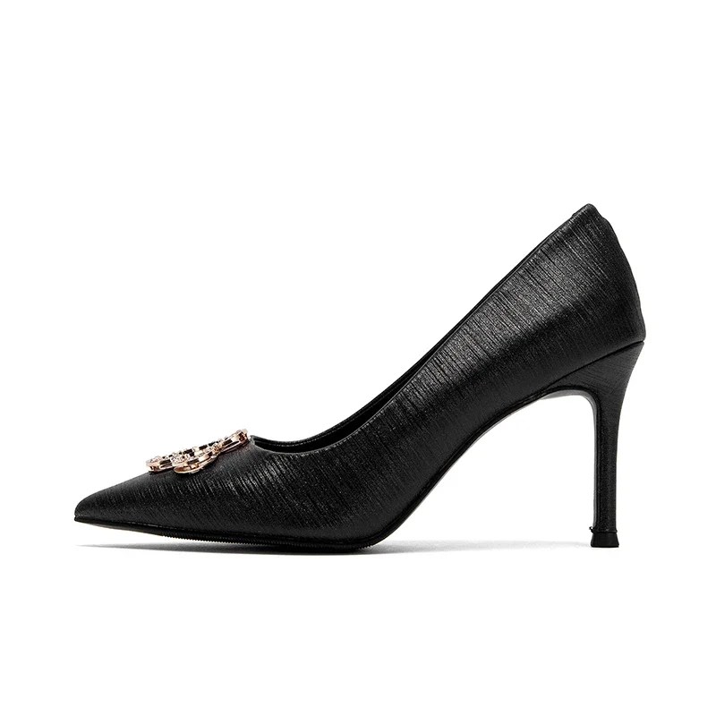 Tacchi alti Cena da matrimonio nera a punta tacco fine scarpe con diamanti lucidi vamp ragazze gonna scarpe da donna sexy nuova inserzione
