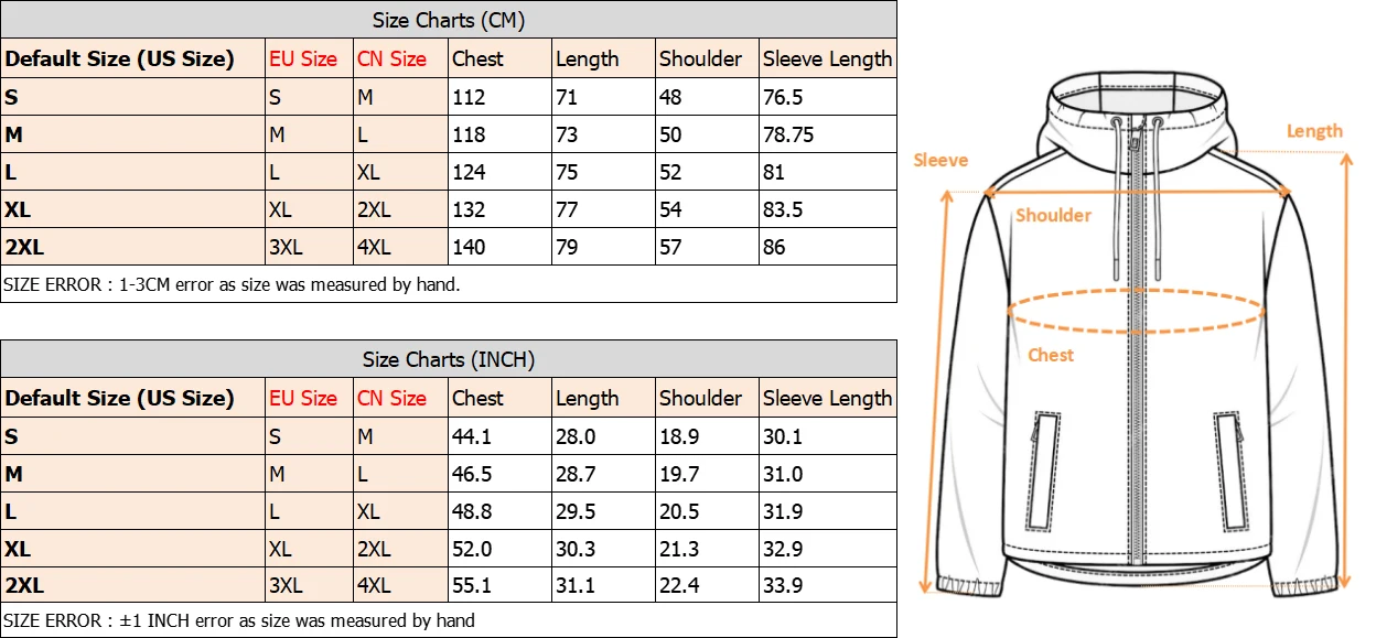 1x Hooded Zip Up Fleece Jacket for Man. ATTENTION:1. Zipper Slider Side On the Right Hands, (This is men's Jacket)2. Only Clothes, No other things.【 TACVASEN 】Brand New & Top Quality.【 Fabric 】Polyester.【 Waterproof 】10000mm waterproof rating fabric outside, effortlessly repels rain, moisture, and even light snow.【 Breathable 】5000g/m²/24hr breathability, allowing air to circulate.【 Windbreaker & Warm】windproof outer shell and fleece inside, keeping you insulated and warm throughout the day.【 Multiple pockets 】2 zipper hand pockets, 1 zipper chest pocket and 2 inner pockets.【 Design 】Adjustable drawstring hood, hook & loop cuffs and drawstring hem keep you away from wind and cold.【 Multiple Colors 】Enough color, easy for pairing with shirts, pants, and sweaters in cold weather during spring, autumn, and winter.【 Occasion 】Suitable for hiking, running, cycling, golf, traveling, fishing, camping, daily leisure, etc. 【 Quality Assurance 】Made by our own factory, More quality assurance & More cost-effective.Wholesale & Dropshipping* We accept Dropshipping for all Items, all drop shipping orders will be operated in priority. * If you need more than 20 pieces, please contact us to get a dicount price.Logo Customize* We accept order logo customize. If you need printing logo or embroidery logo, please contact us through in-site Chat.Note: direct orders without prior communication will not be accepted for logo customization.* Please provide us these information: clear logo picture, size, location, product and quantity.Attention:1. Different computer screen may display different colors even if it is the same color.So please allow reasonable color difference.2. Size chart is measurement of outer jacket, which may have 1-3 cm errors, since measured by hands.3. Please measure yourself before ordering,contact us if you are not sure.4. Default size (tag size) is US size, if you not make sure about size, tell us your height and weight for size recommendation.