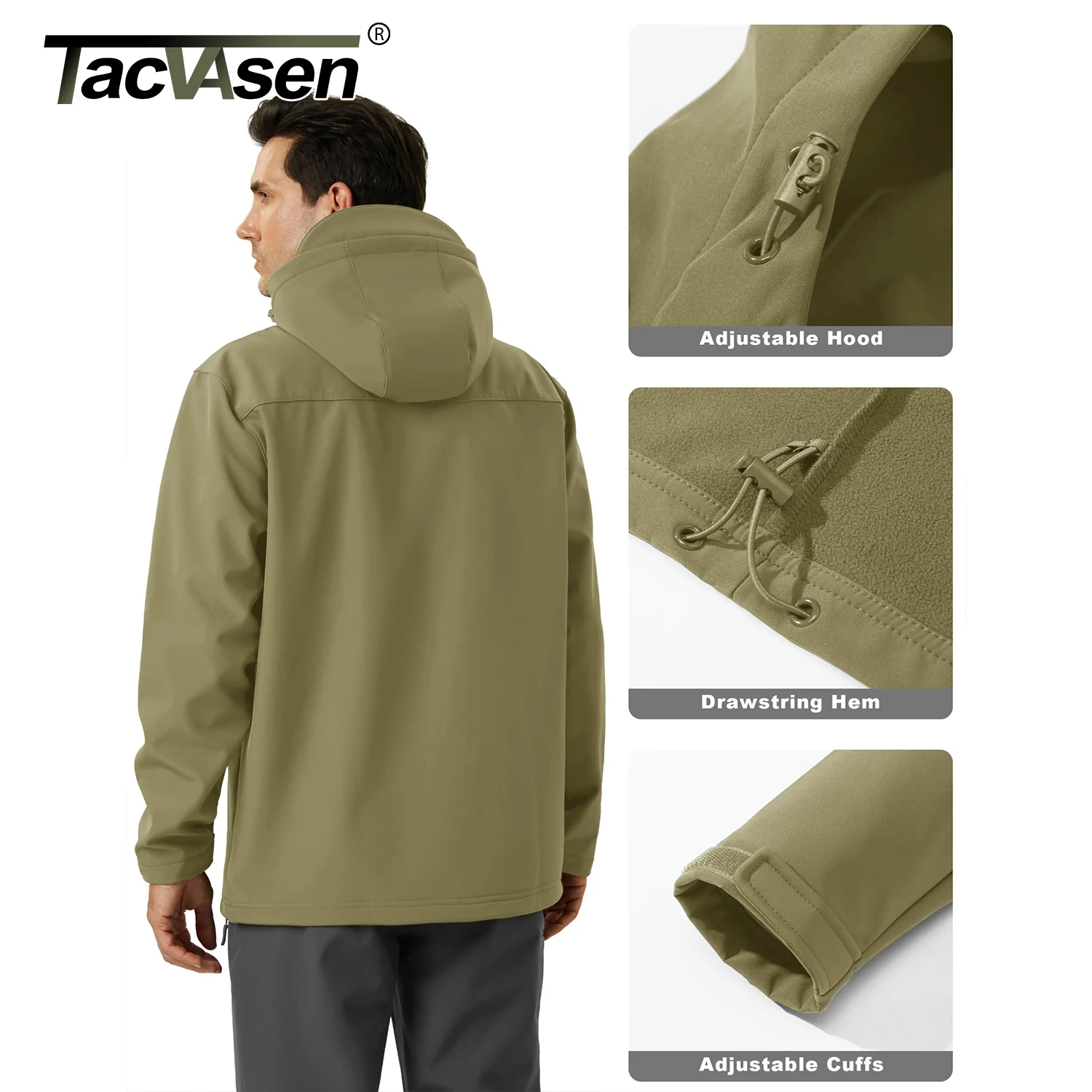 1x Hooded Zip Up Fleece Jacket for Man. ATTENTION:1. Zipper Slider Side On the Right Hands, (This is men's Jacket)2. Only Clothes, No other things.【 TACVASEN 】Brand New & Top Quality.【 Fabric 】Polyester.【 Waterproof 】10000mm waterproof rating fabric outside, effortlessly repels rain, moisture, and even light snow.【 Breathable 】5000g/m²/24hr breathability, allowing air to circulate.【 Windbreaker & Warm】windproof outer shell and fleece inside, keeping you insulated and warm throughout the day.【 Multiple pockets 】2 zipper hand pockets, 1 zipper chest pocket and 2 inner pockets.【 Design 】Adjustable drawstring hood, hook & loop cuffs and drawstring hem keep you away from wind and cold.【 Multiple Colors 】Enough color, easy for pairing with shirts, pants, and sweaters in cold weather during spring, autumn, and winter.【 Occasion 】Suitable for hiking, running, cycling, golf, traveling, fishing, camping, daily leisure, etc. 【 Quality Assurance 】Made by our own factory, More quality assurance & More cost-effective.Wholesale & Dropshipping* We accept Dropshipping for all Items, all drop shipping orders will be operated in priority. * If you need more than 20 pieces, please contact us to get a dicount price.Logo Customize* We accept order logo customize. If you need printing logo or embroidery logo, please contact us through in-site Chat.Note: direct orders without prior communication will not be accepted for logo customization.* Please provide us these information: clear logo picture, size, location, product and quantity.Attention:1. Different computer screen may display different colors even if it is the same color.So please allow reasonable color difference.2. Size chart is measurement of outer jacket, which may have 1-3 cm errors, since measured by hands.3. Please measure yourself before ordering,contact us if you are not sure.4. Default size (tag size) is US size, if you not make sure about size, tell us your height and weight for size recommendation.