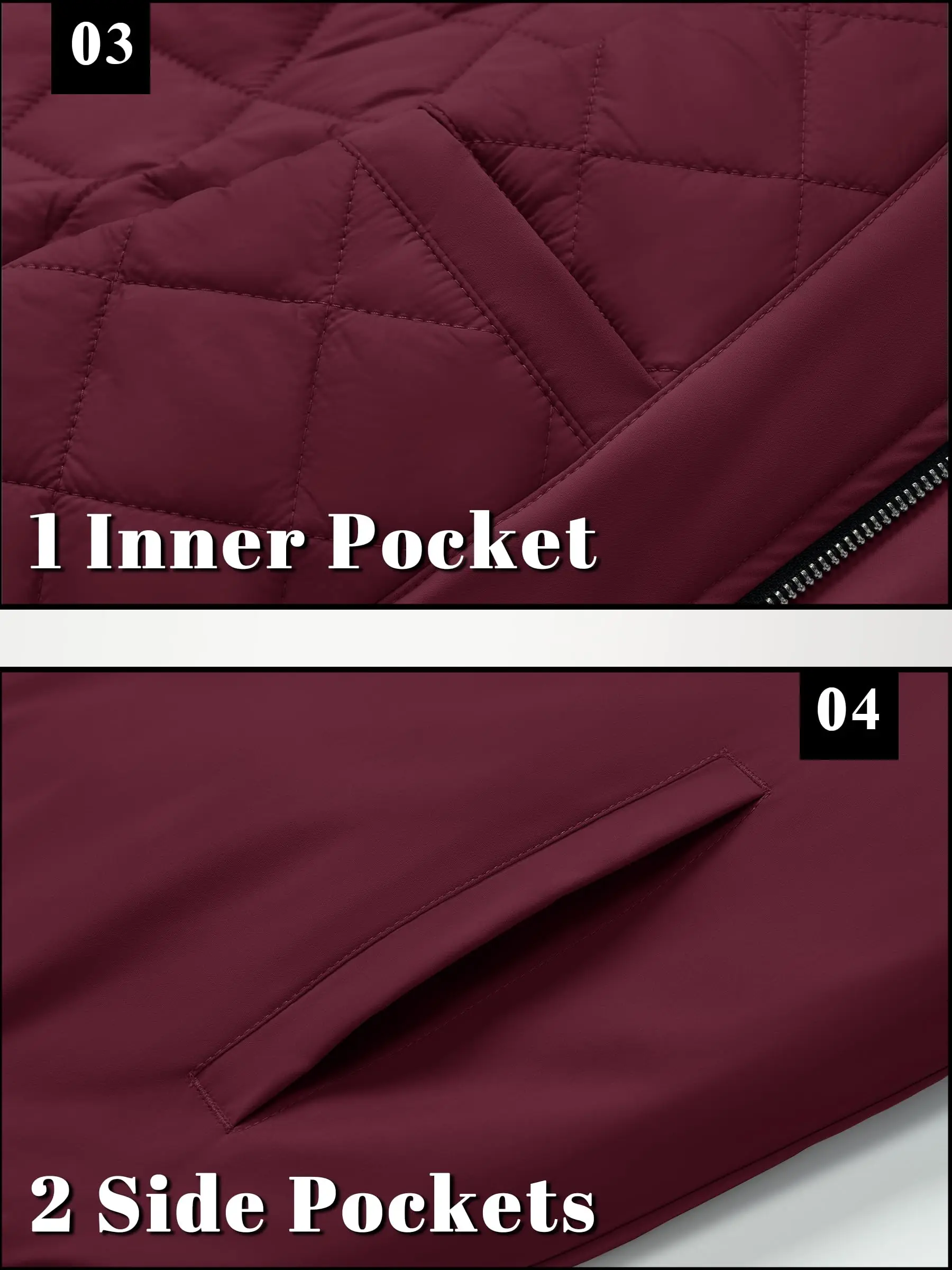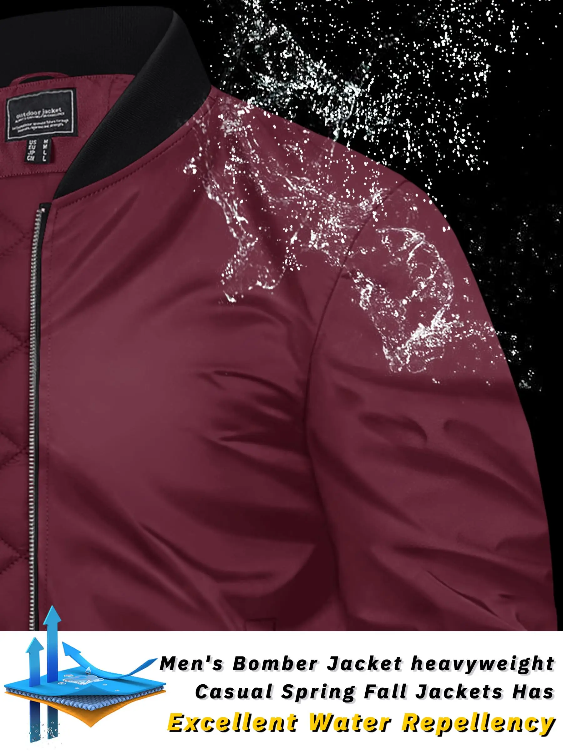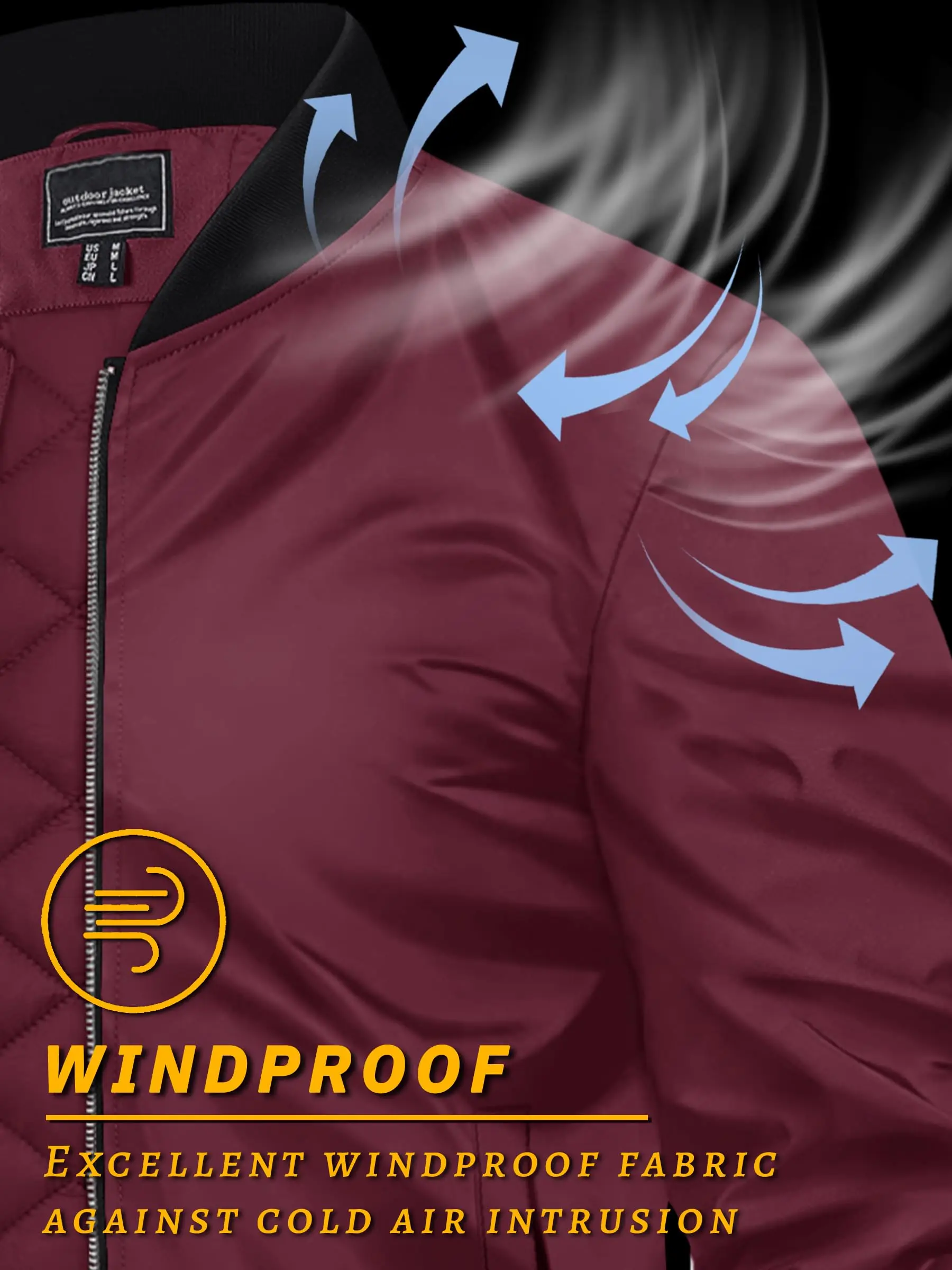 * High Quality Material: Polyester.* Padded Warm, Comfort and Wear-resistance.* Waterproof and Windproof.* 2 handy pockets and 1 inner pocket.* Full zip up, Ribbed collor, cuffs and ribbed hems.* Unique color block design, more fashion.* Great for cycling, camping, fishing, hiking, travelling and outdoor sports or daily wear.* Made by our own factory, more quality assurance & more cost-effective.