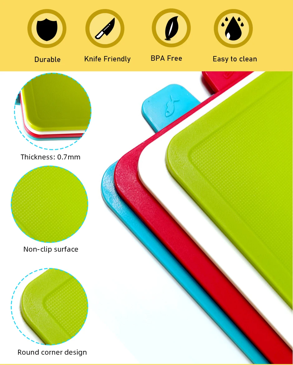 Index Tabs – Set di 4 tagliere in plastica con codice colore e custodia.Le schede in stile indice si indicano quel tipo alimentare dovrebbero essere utilizzate per – carne cruda, pesce crudo, verdure o cibo cotto.