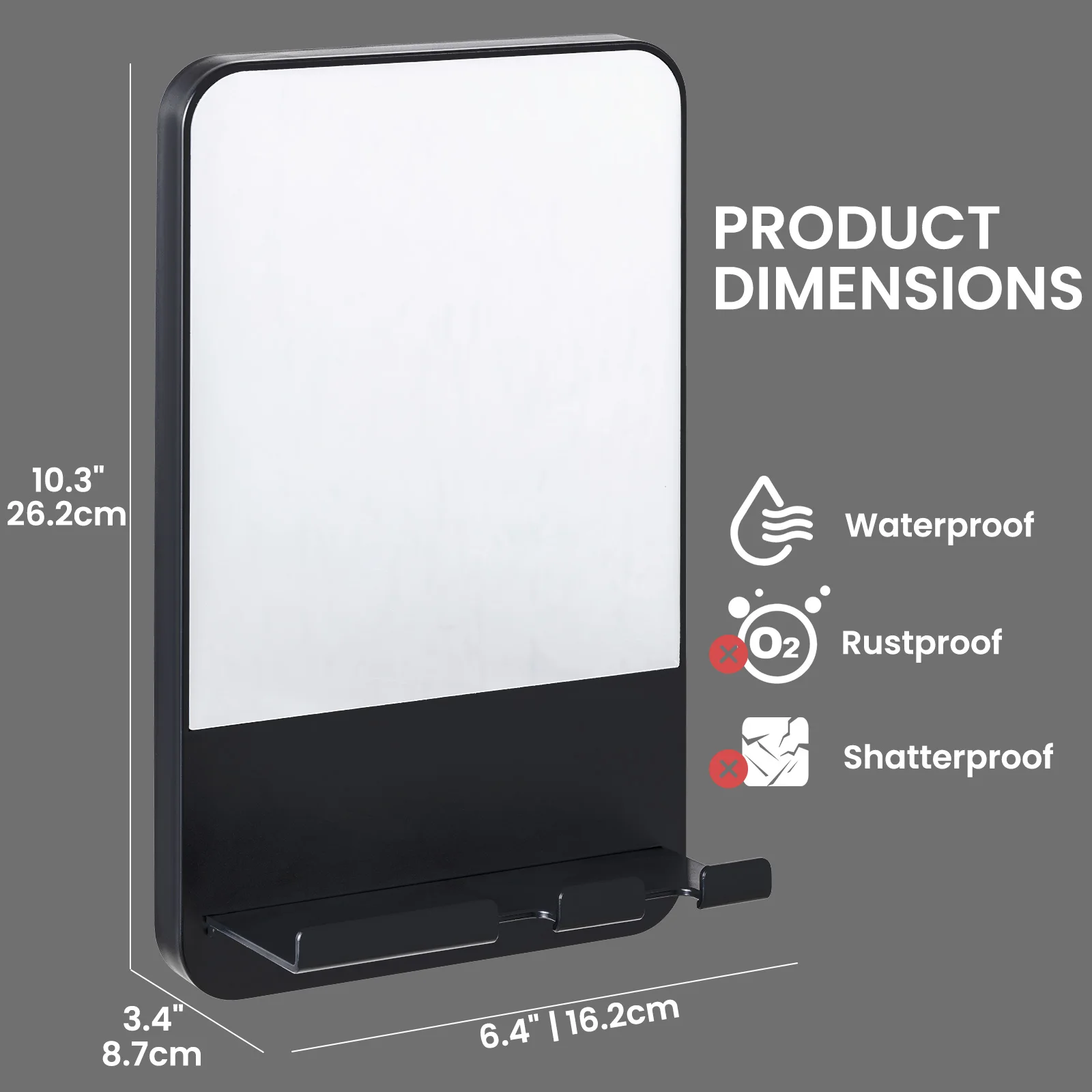 TAILI Specchio da barba per doccia con vassoio portaoggetti, con porta rasoio, ventosa rimovibile, infrangibile, specchio da bagno senza nebbia