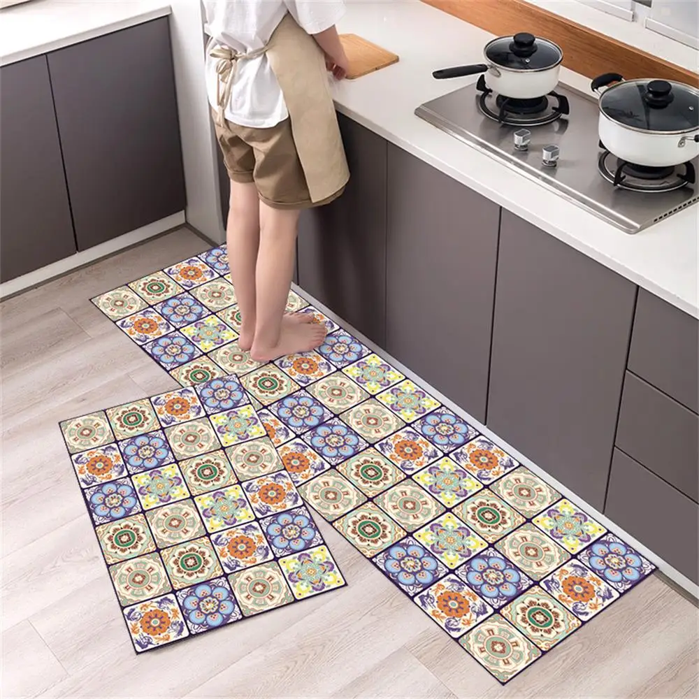 3.Design retrò: il tappeto utilizza il design retrò con motivi di piastrelle, che è primitivo e lussuoso, creando il proprio giardino segreto a casa.Il nostro tappetino da cucina è comodo.Non ti senti freddo quando non lo passo a piedi nudi.