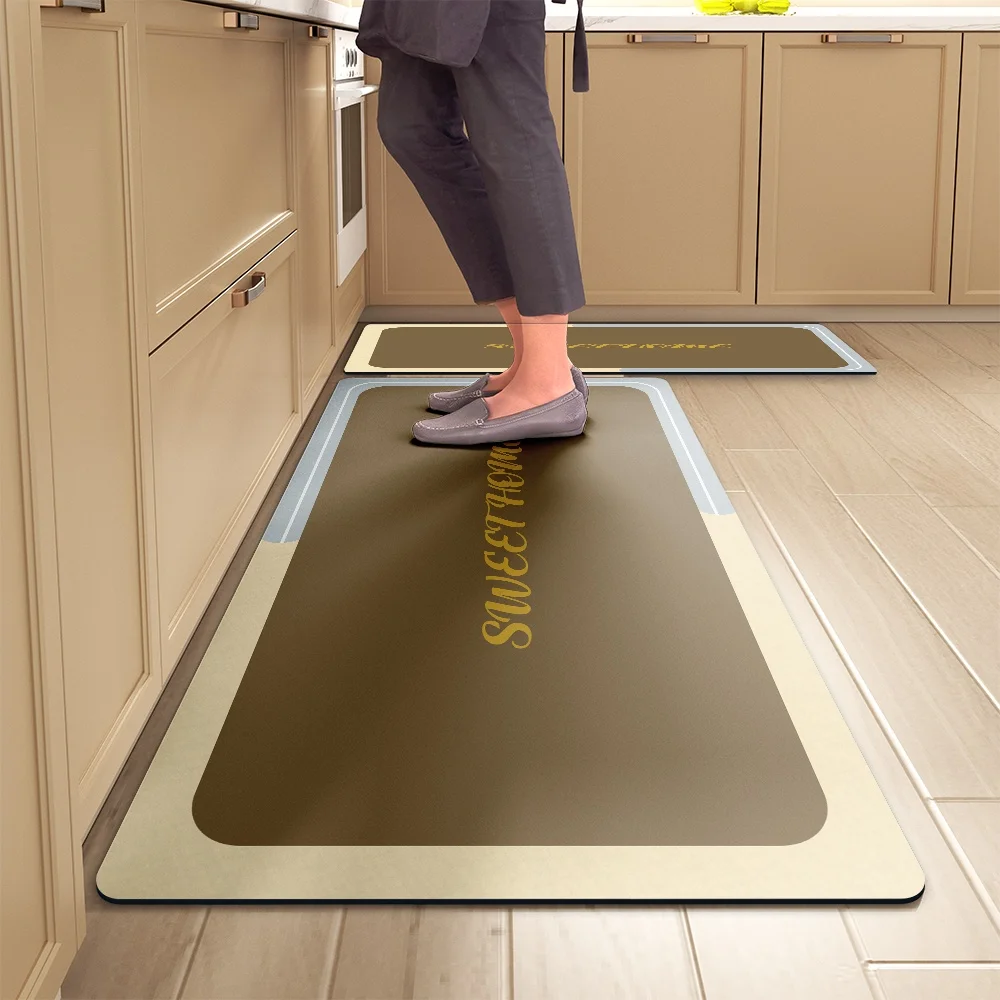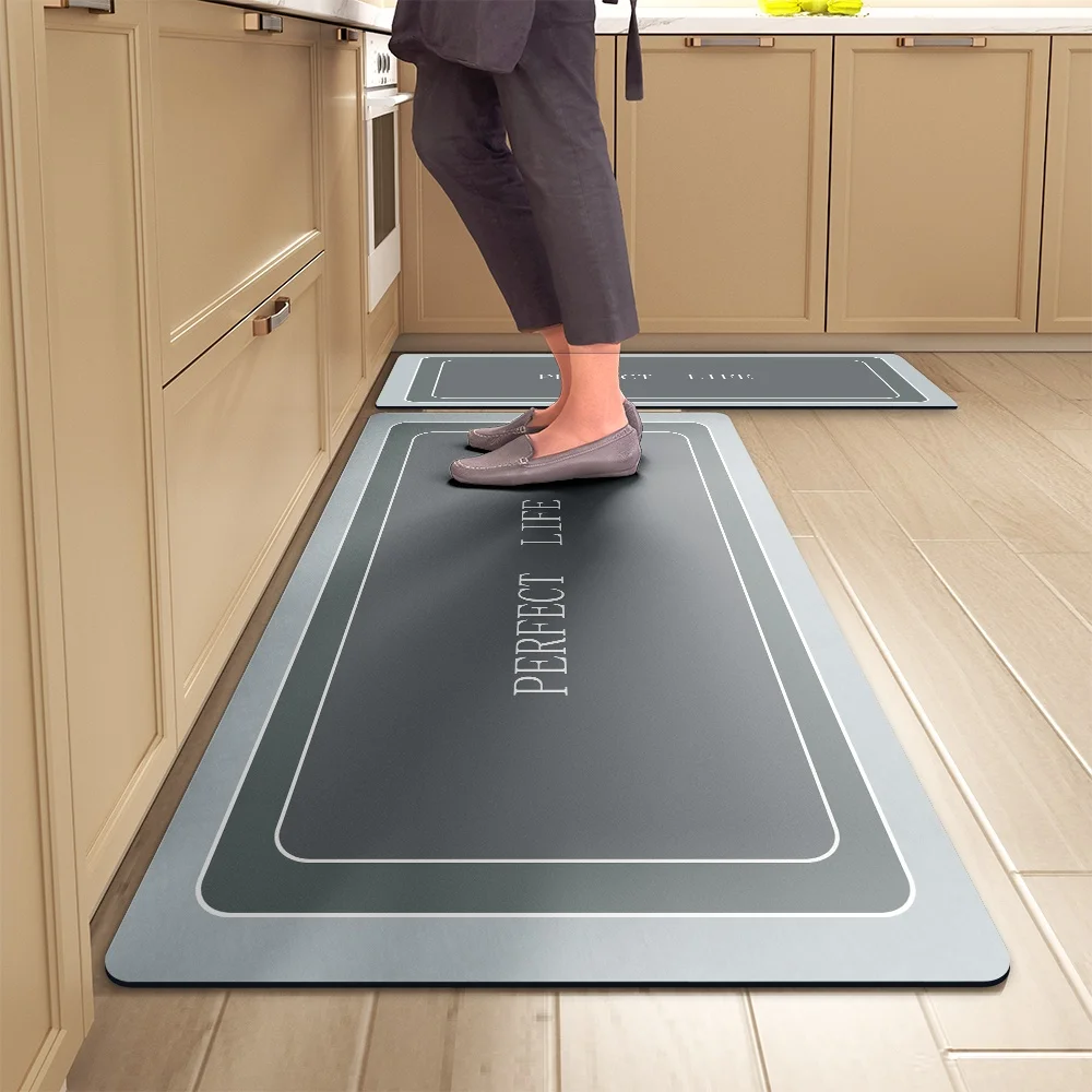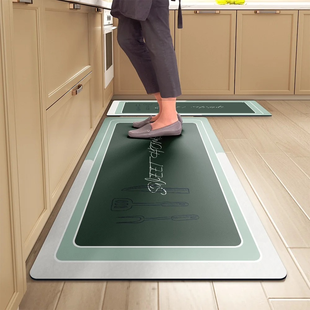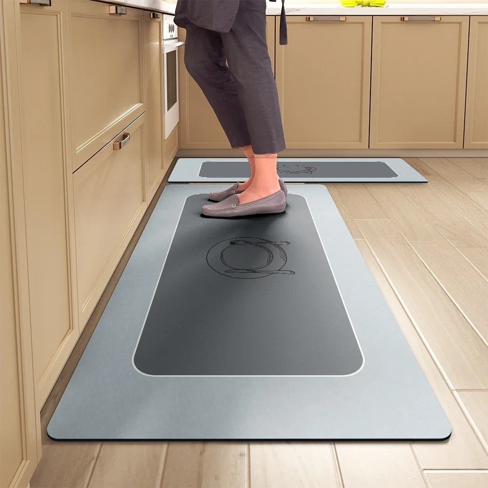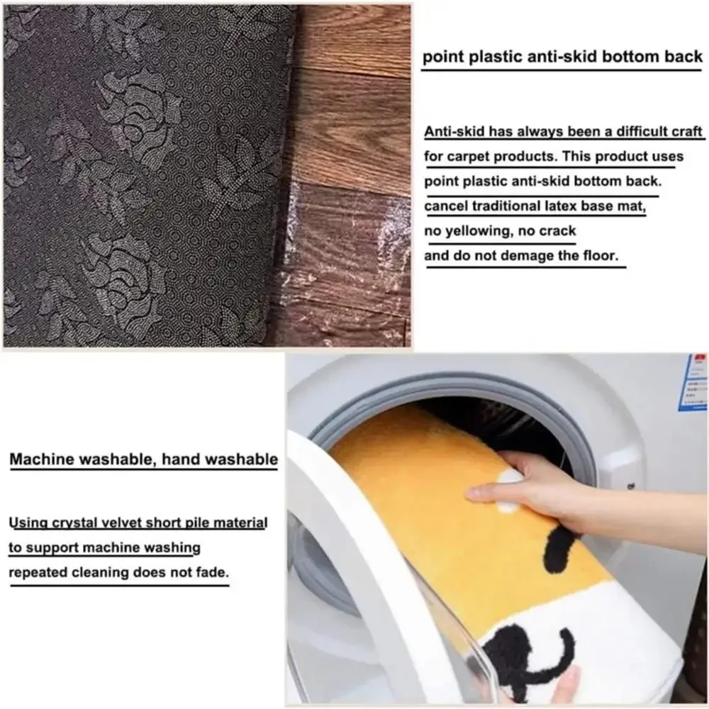 1.Materiale in velluto di cristallo: il tappetino della cucina è realizzato in velluto di cristallo di alta qualità, delicato sulla pelle, durevole, sano ed ambientale.