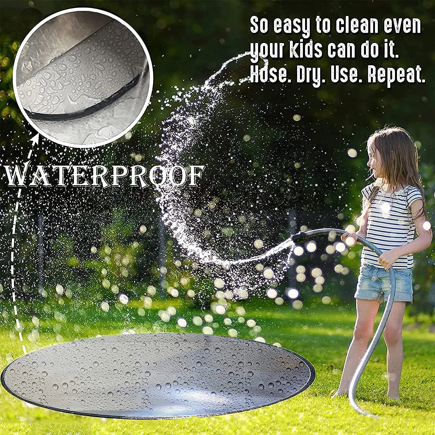Il tappetino rotondo sotto la griglia con rivestimento in silicone è ideale per proteggere il ponte o il patio da fuoriuscite di cibo, schizzi di grasso e macchie. Il tappeto da pavimento firepit da 36 pollici non si attacca o lascia segni sulla superficie del ponte e sull’erba. Assicurati che ci sia almeno 8 ”di spazio tra la fonte di calore e il tappetino ignifugo.