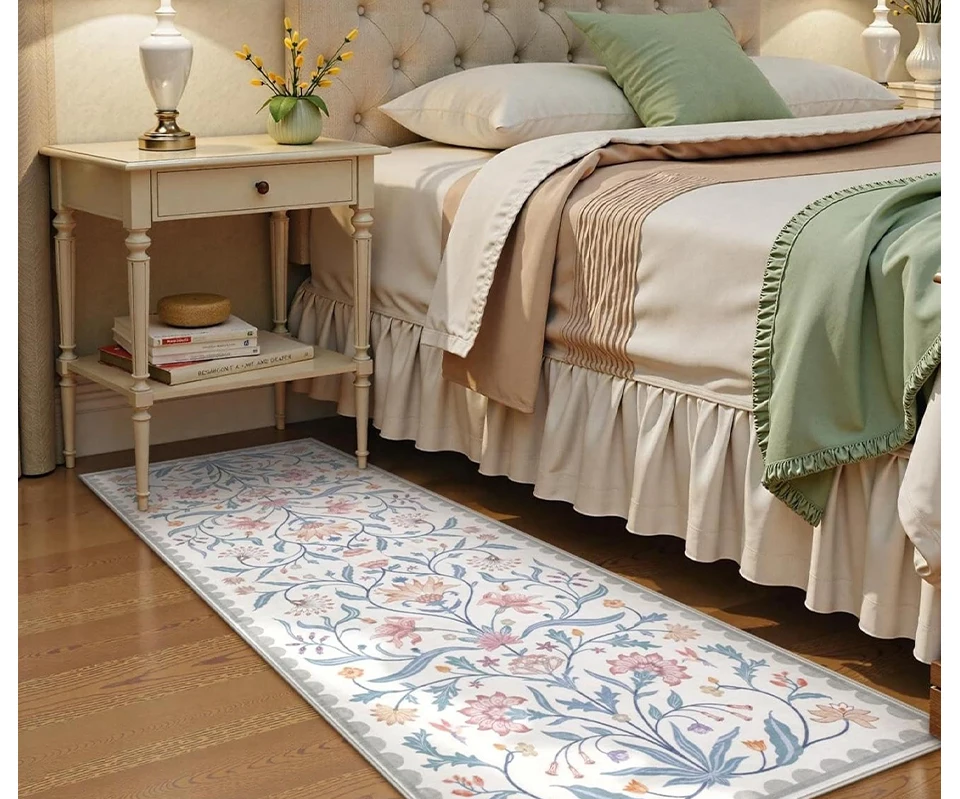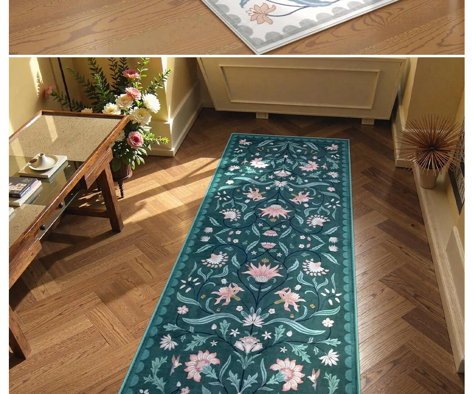 Il fronte del tessuto di questo tappeto ha un design morbido e delicato a pelo corto e il fondo è un fondo antiscivolo pieghevole lavabile, che ha un buon effetto antiscivolo e supporti pieghevoli senza paura di pieghe.Di corso, questo tappeto supporta lavatrice e è molto comodo da pulire.