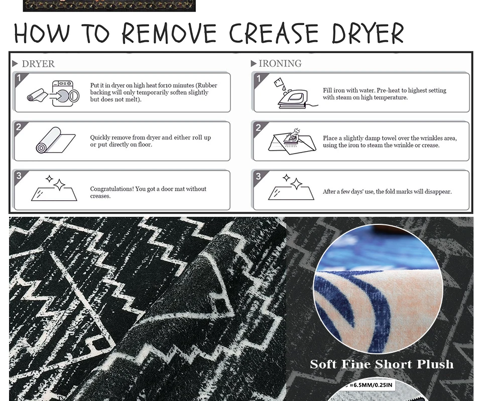 Divieto alle restrizioni di spedizione in alcuni paesi, alcuni tappeti richiedono imballaggi piegati. Quando ricevere il tappeto, ci potrebbe essere alcune pieghe. Dopo un periodo di uso normale, le pieghe scompare gradualmente. Puoi anche eliminare rapidamente le pieghe da stiro.