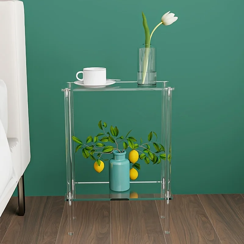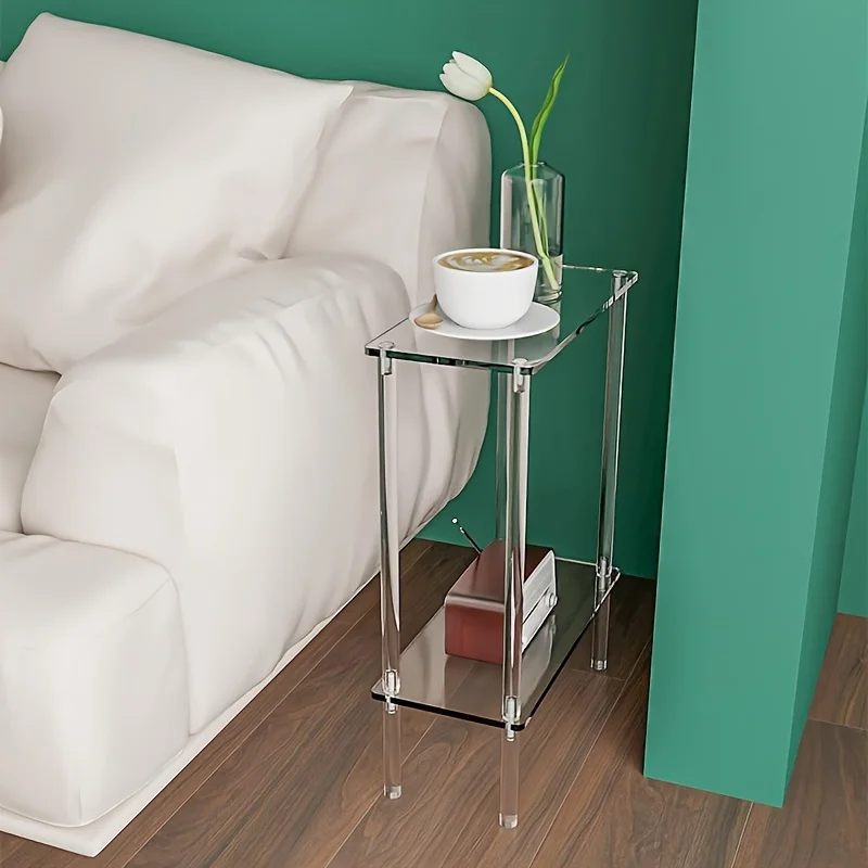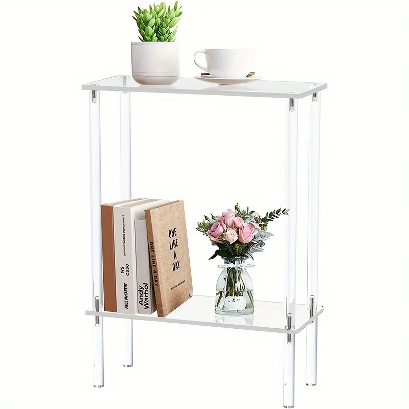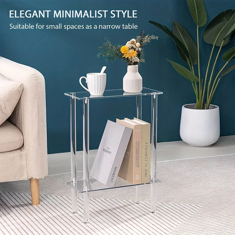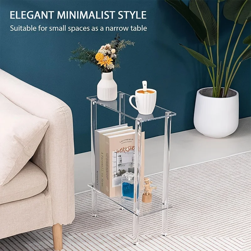 Tavolino in acrilico per camera da letto - Tavolino portatile indipendente stretto a 2 livelli per piccoli spazi, trasparente - Comodino elegante 1Tavolino in acrilico per camera da letto – Tavolino portatile indipendente stretto a 2 livelli per piccoli spazi, trasparente – Comodino elegante