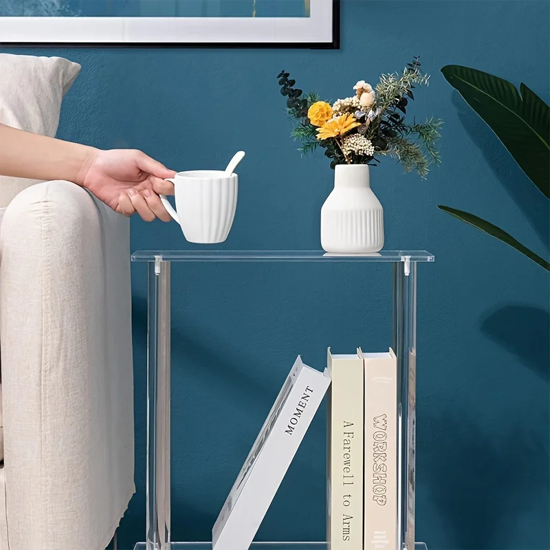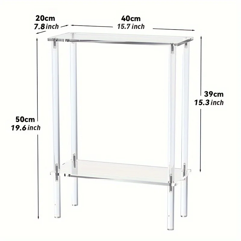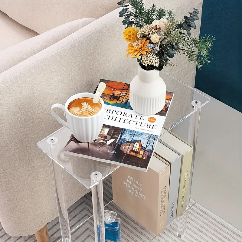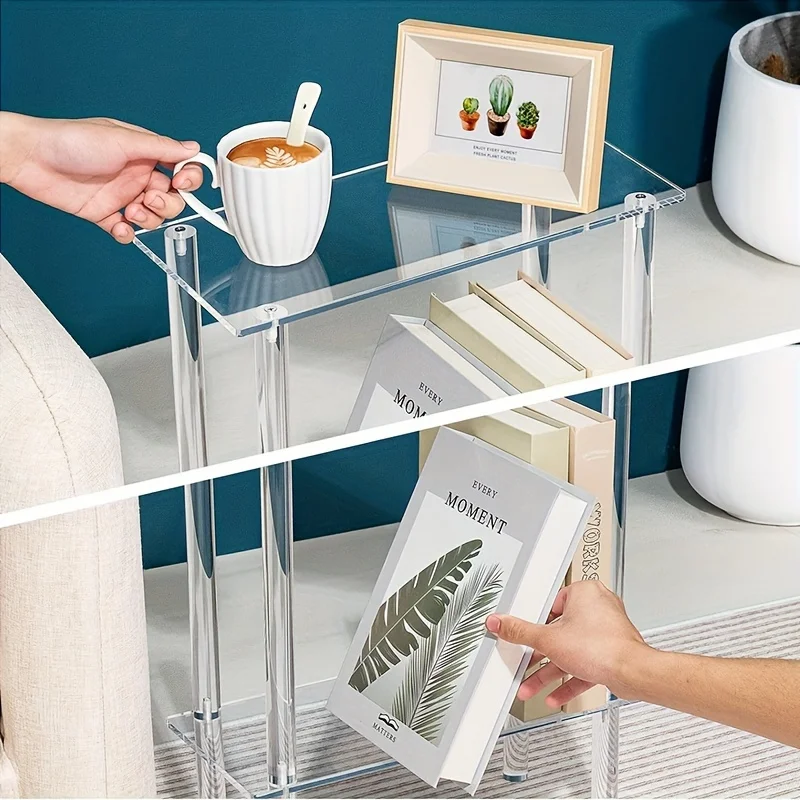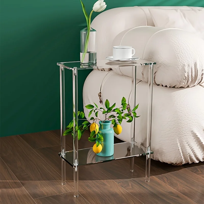 Tavolino in acrilico per camera da letto - Tavolino portatile indipendente stretto a 2 livelli per piccoli spazi, trasparente - Comodino elegante 1Tavolino in acrilico per camera da letto – Tavolino portatile indipendente stretto a 2 livelli per piccoli spazi, trasparente – Comodino elegante