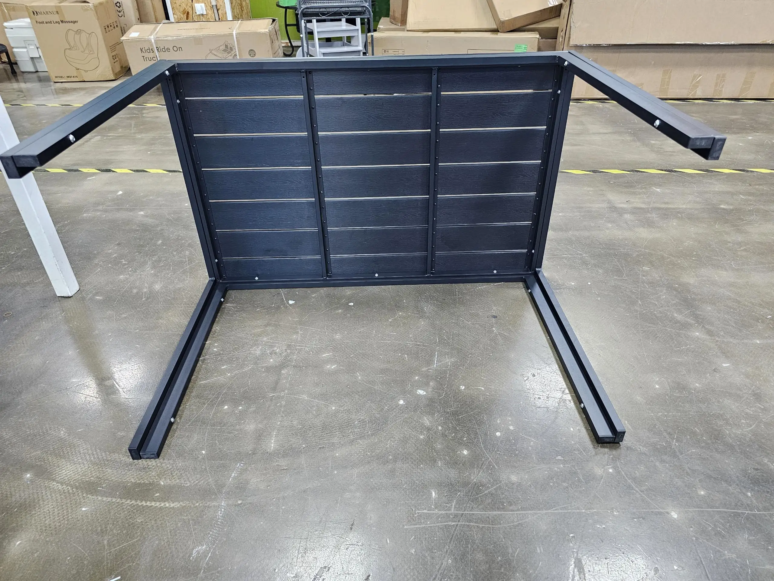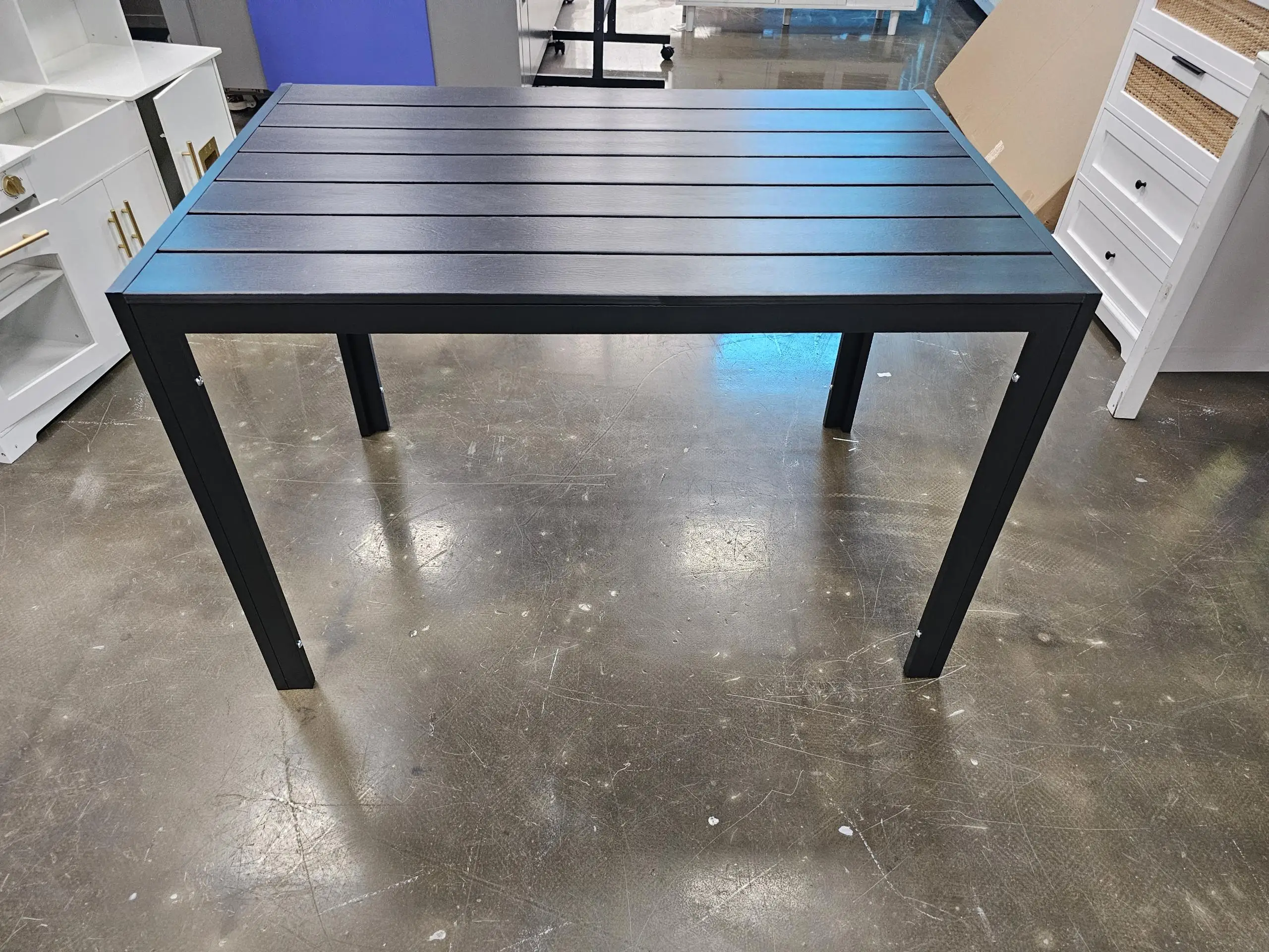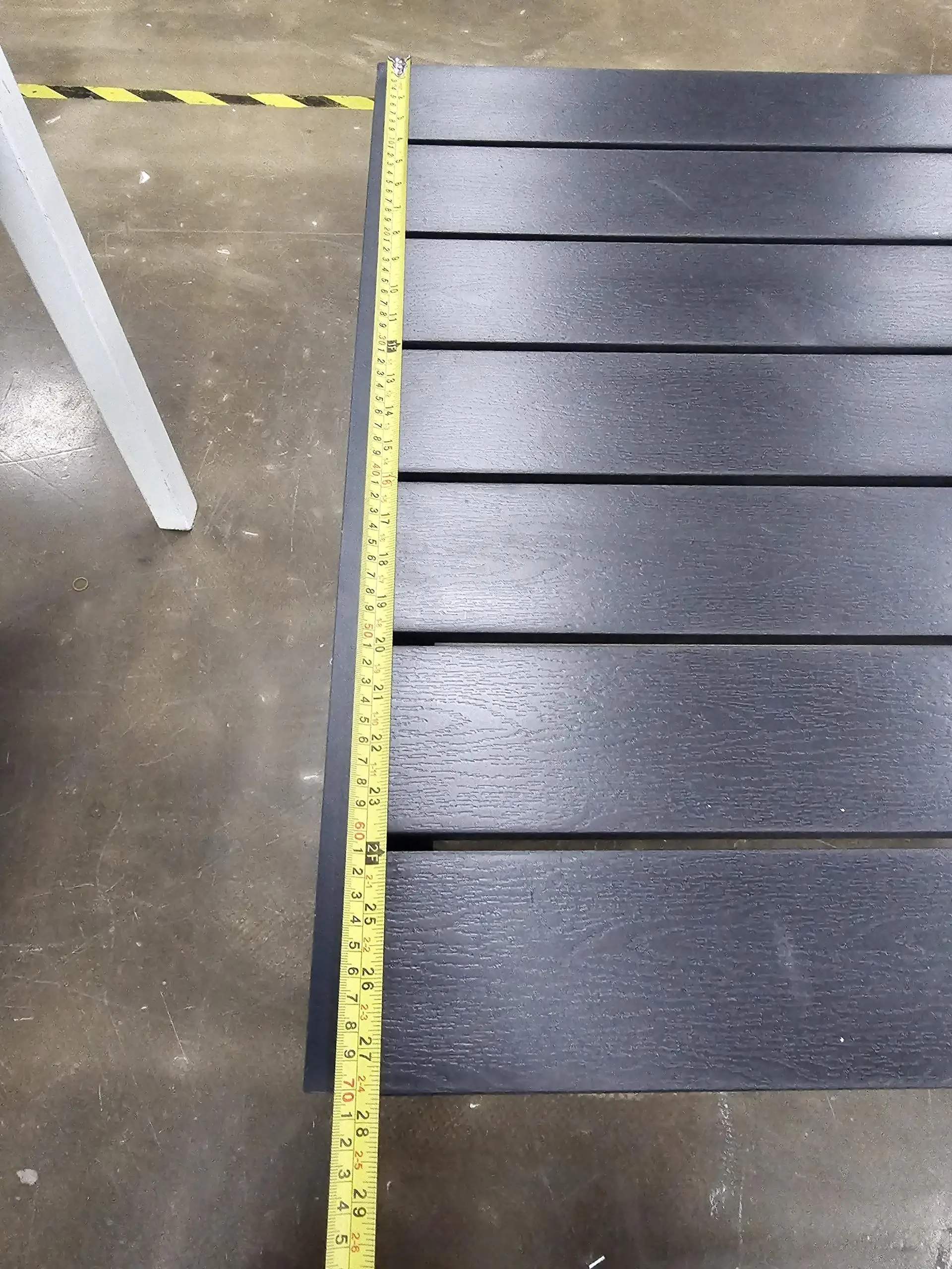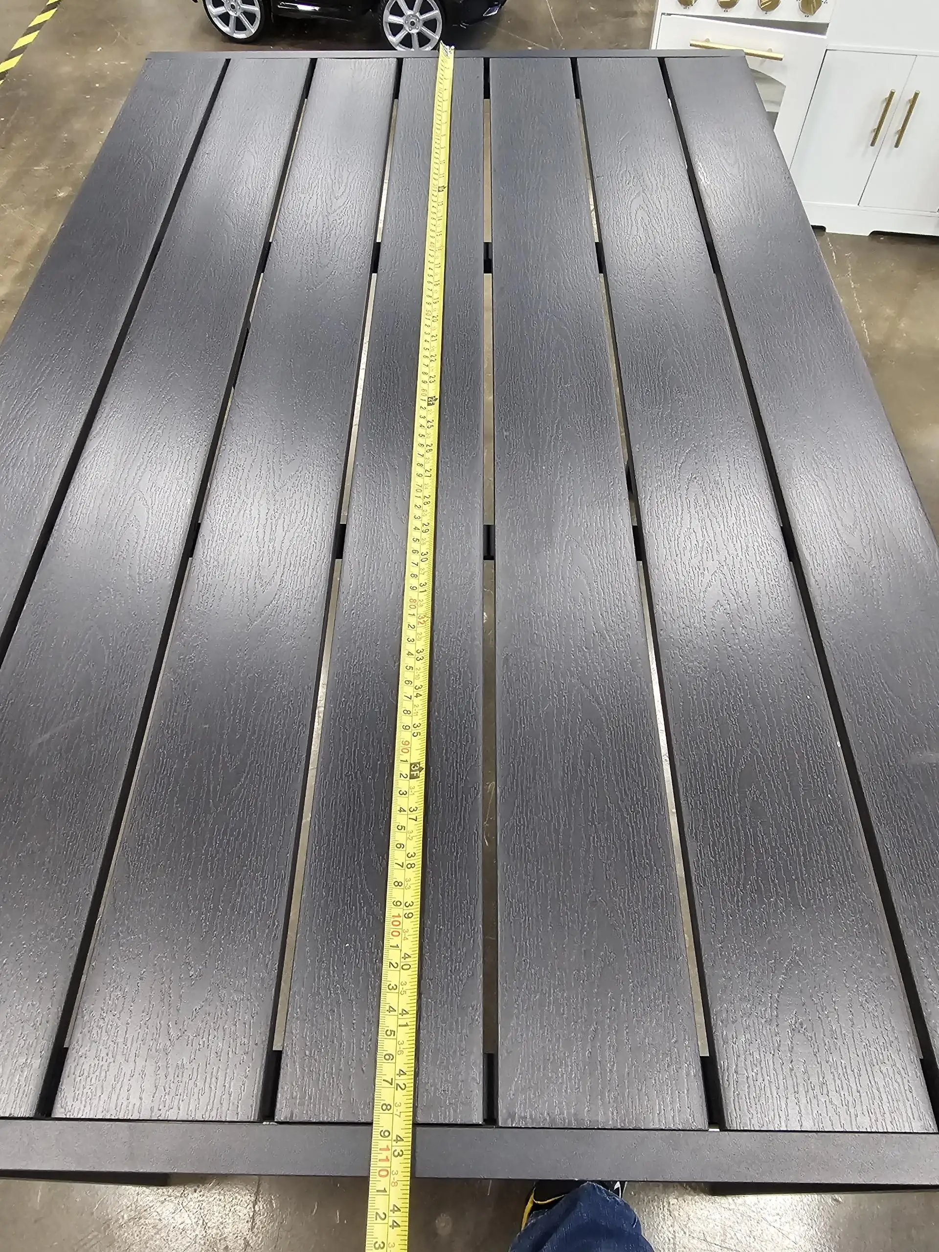 【WOOD PLASTICO A STRIPE】 Il legno plastico è resistente all’umidità e all’acqua, resistente al sole e al freddo e all’umidità, è il migliore scelta per materiale da tavolo da esterno; il tavolo è progettato con strisce, con nero, classico ed elegante.
