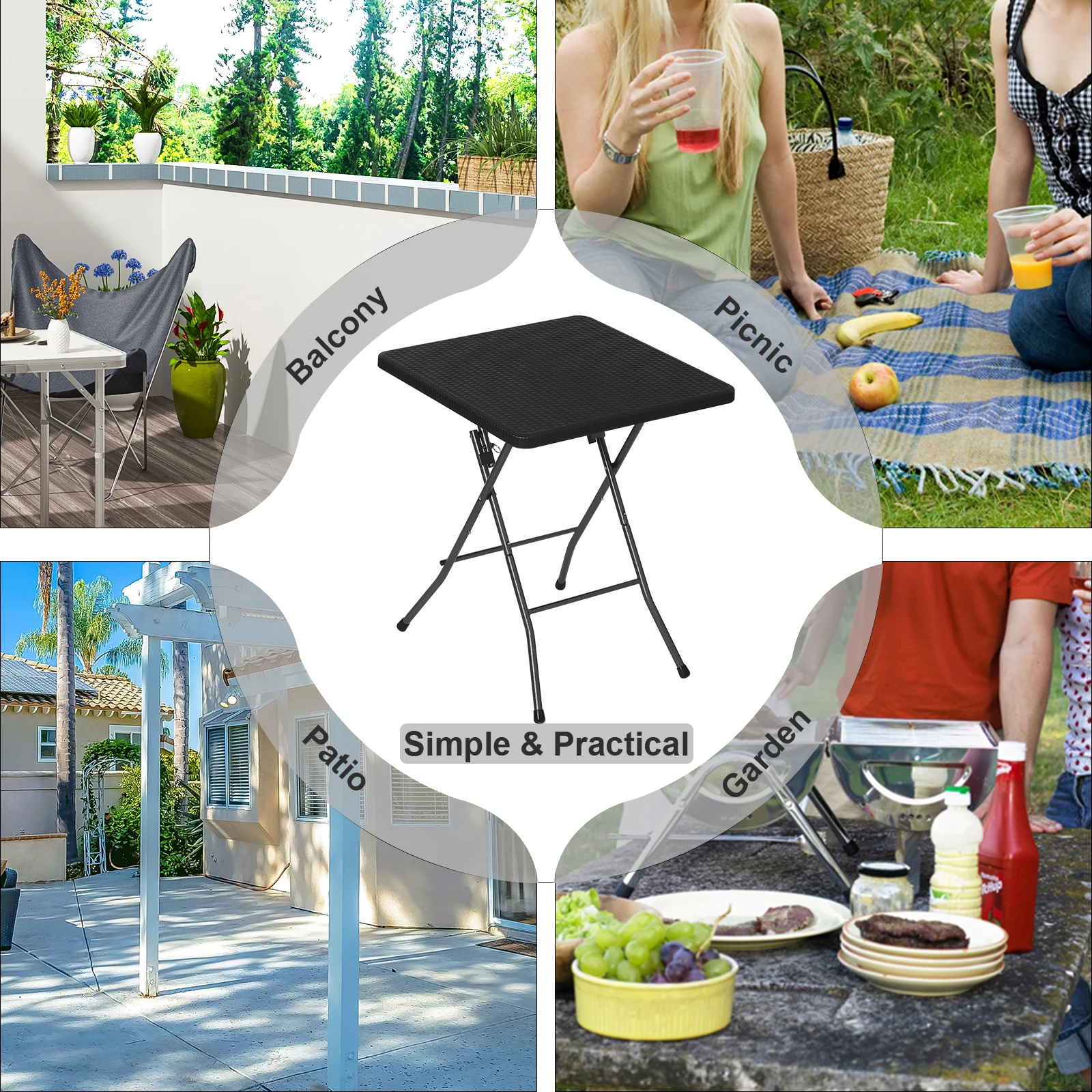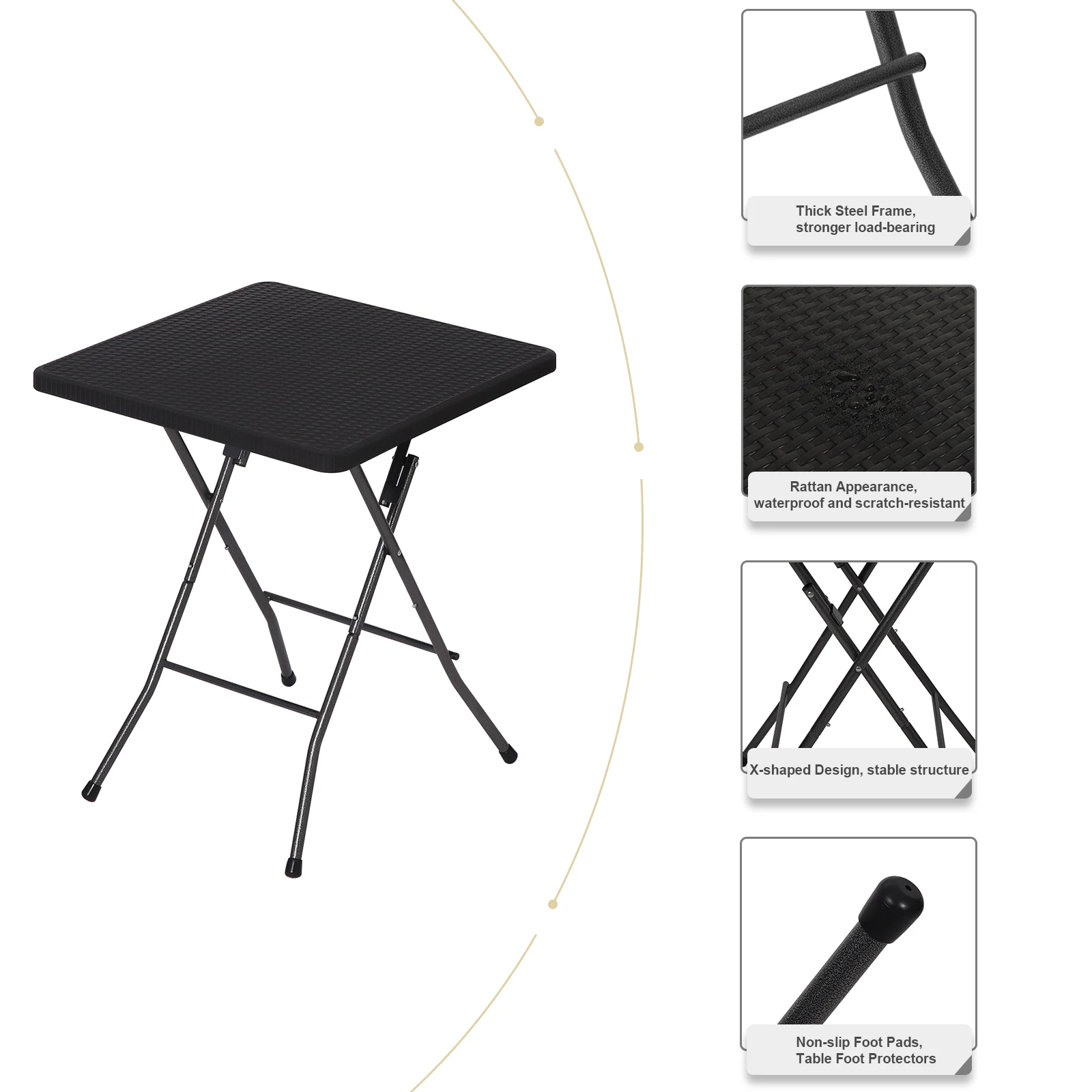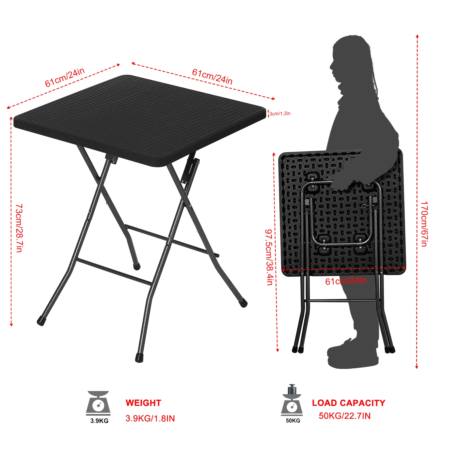 Tavolo da giardino pieghevole 61x61x73cm tavolo da balcone pieghevole tavolino effetto Rattan tavolino da caffè per campeggio terrazza all’aperto casa