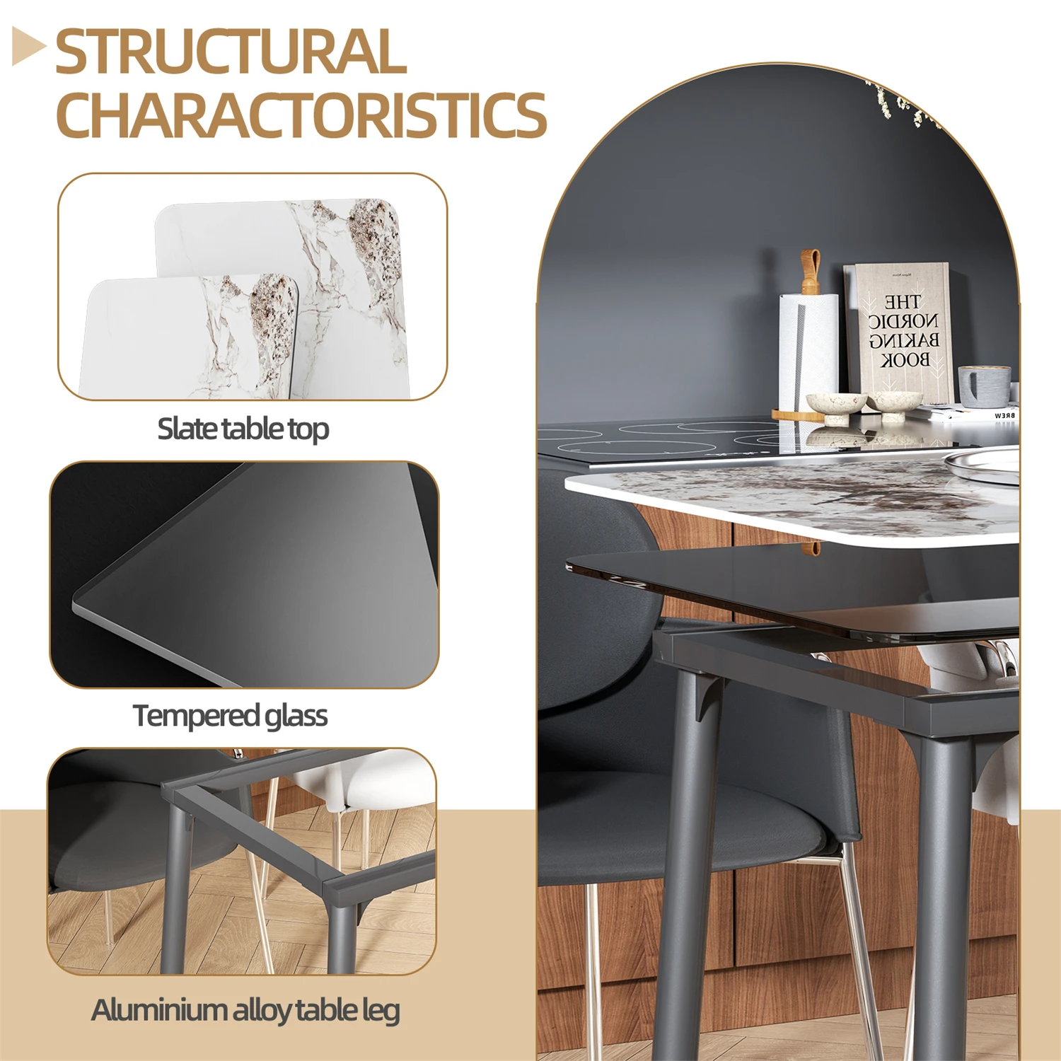 Materiale: Pietra sinterizzata + Vetro temperato + Alluminio