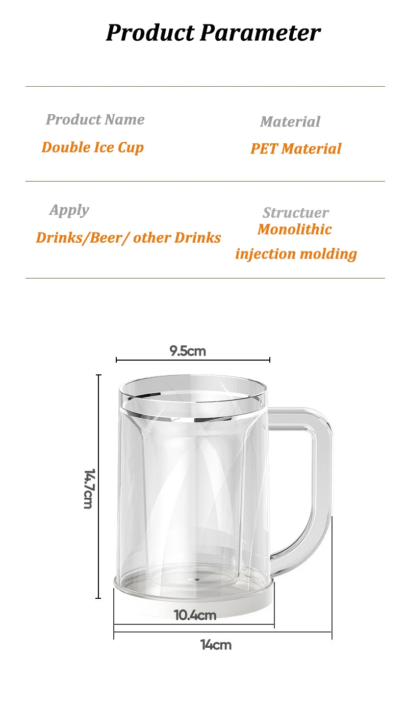 Tazze di ghiaccio per congelatore gel freddo a doppia parete Tazza di birra con manici Bicchieri da whisky trasparenti per bicchieri da bar all'aperto 1Tazze di ghiaccio per congelatore gel freddo a doppia parete Tazza di birra con manici Bicchieri da whisky trasparenti per bicchieri da bar all’aperto