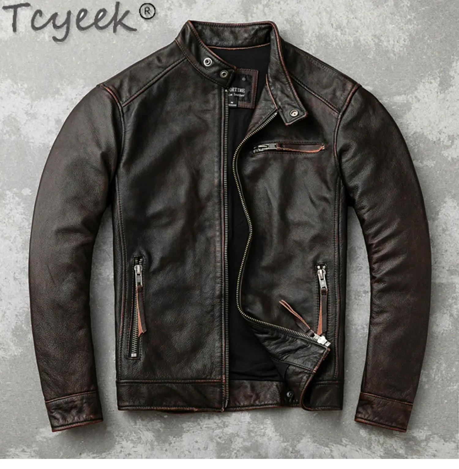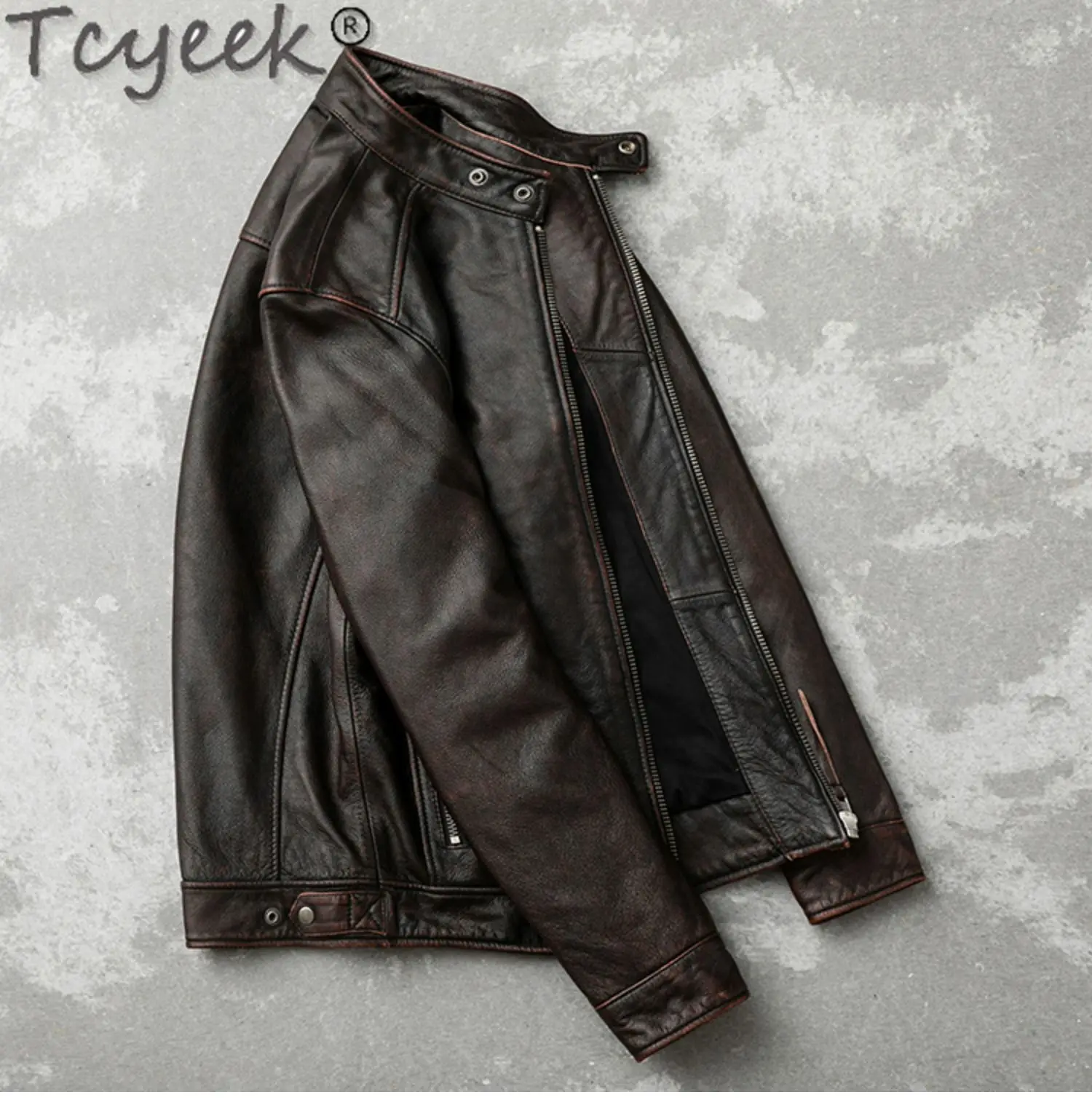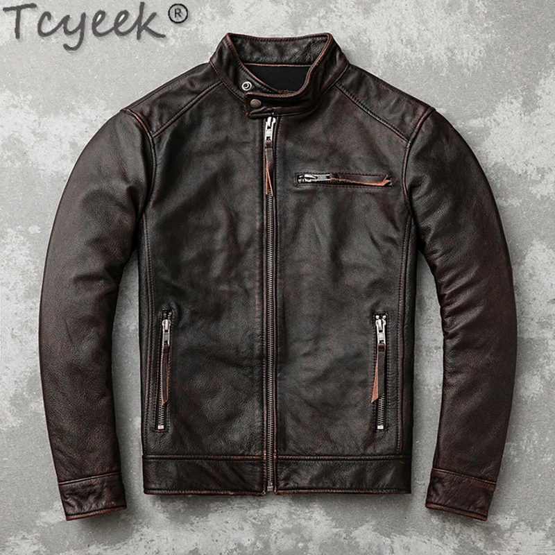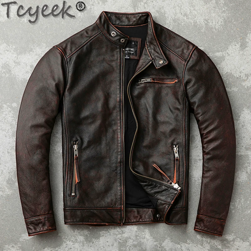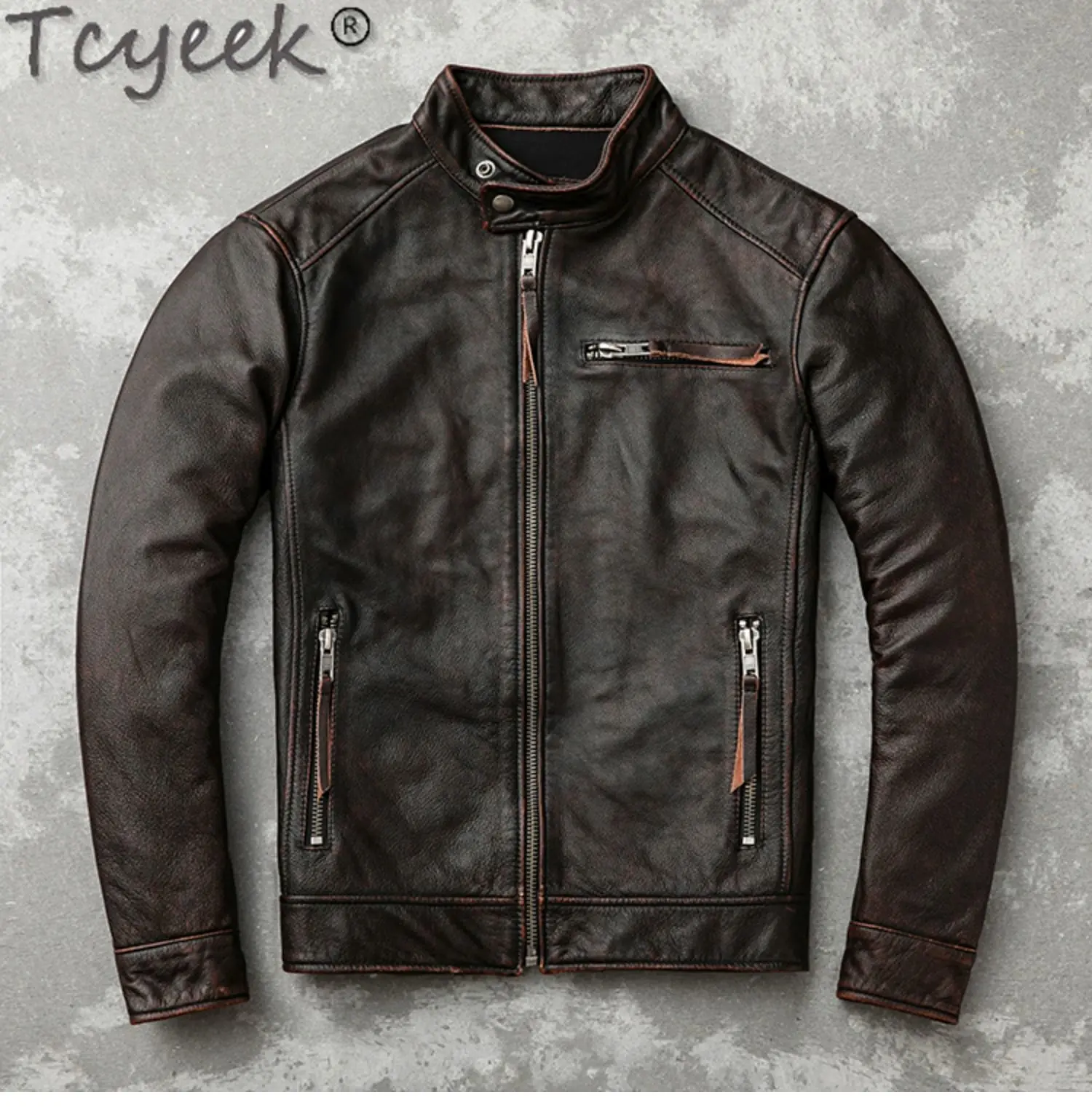 Tcyeek Giacca in vera pelle da uomo Strato superiore Cappotti in pelle di vacchetta Primavera Autunno Cappotto in pelle vintage Giacche da uomo Jaqueta Masculina