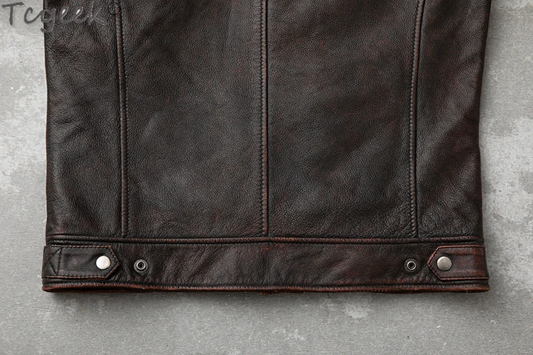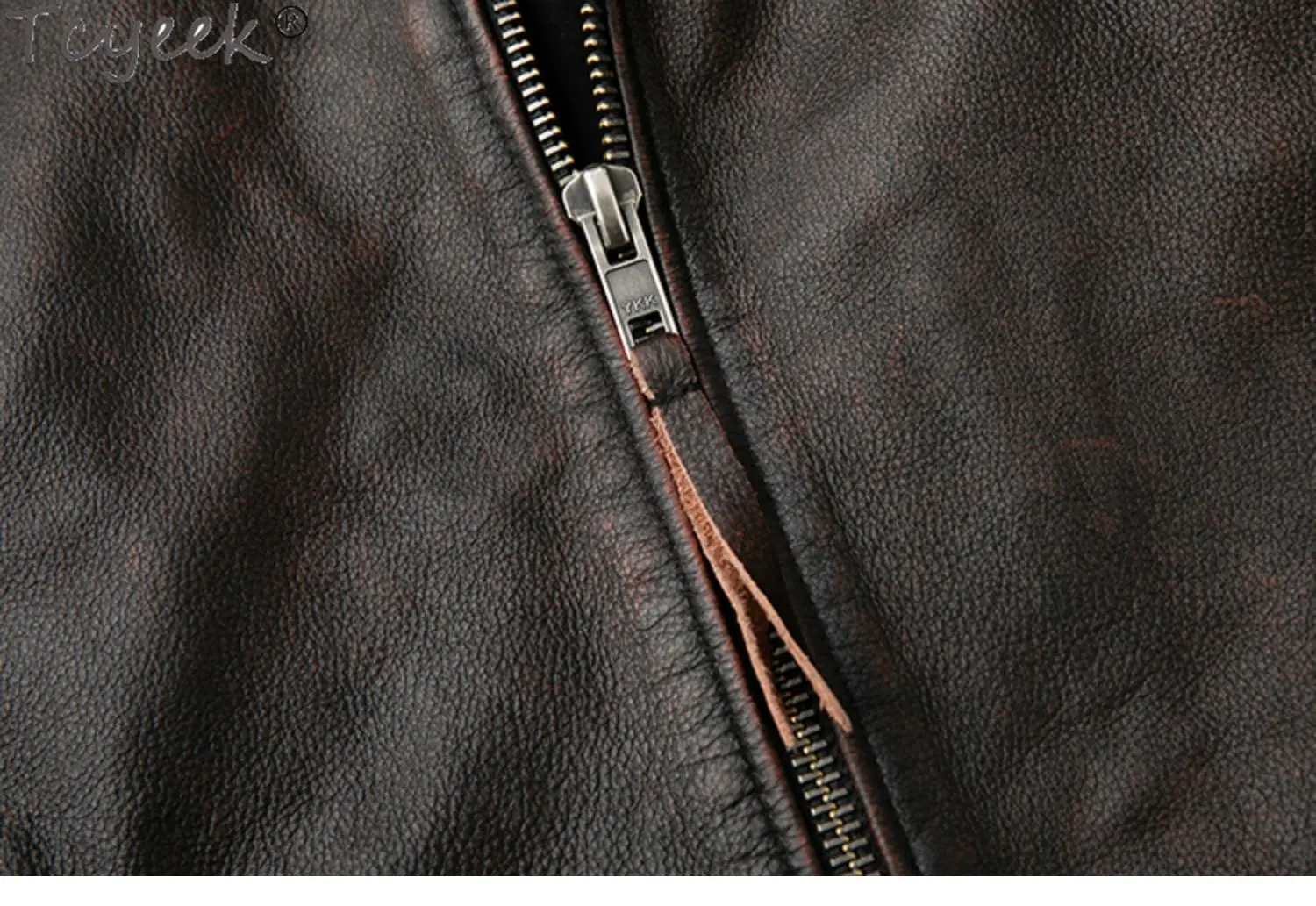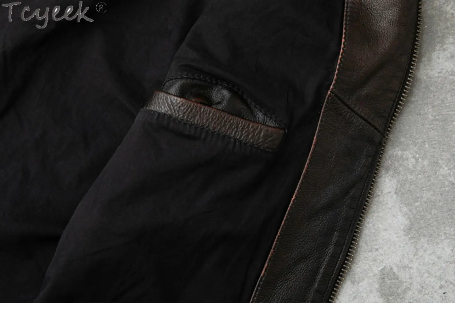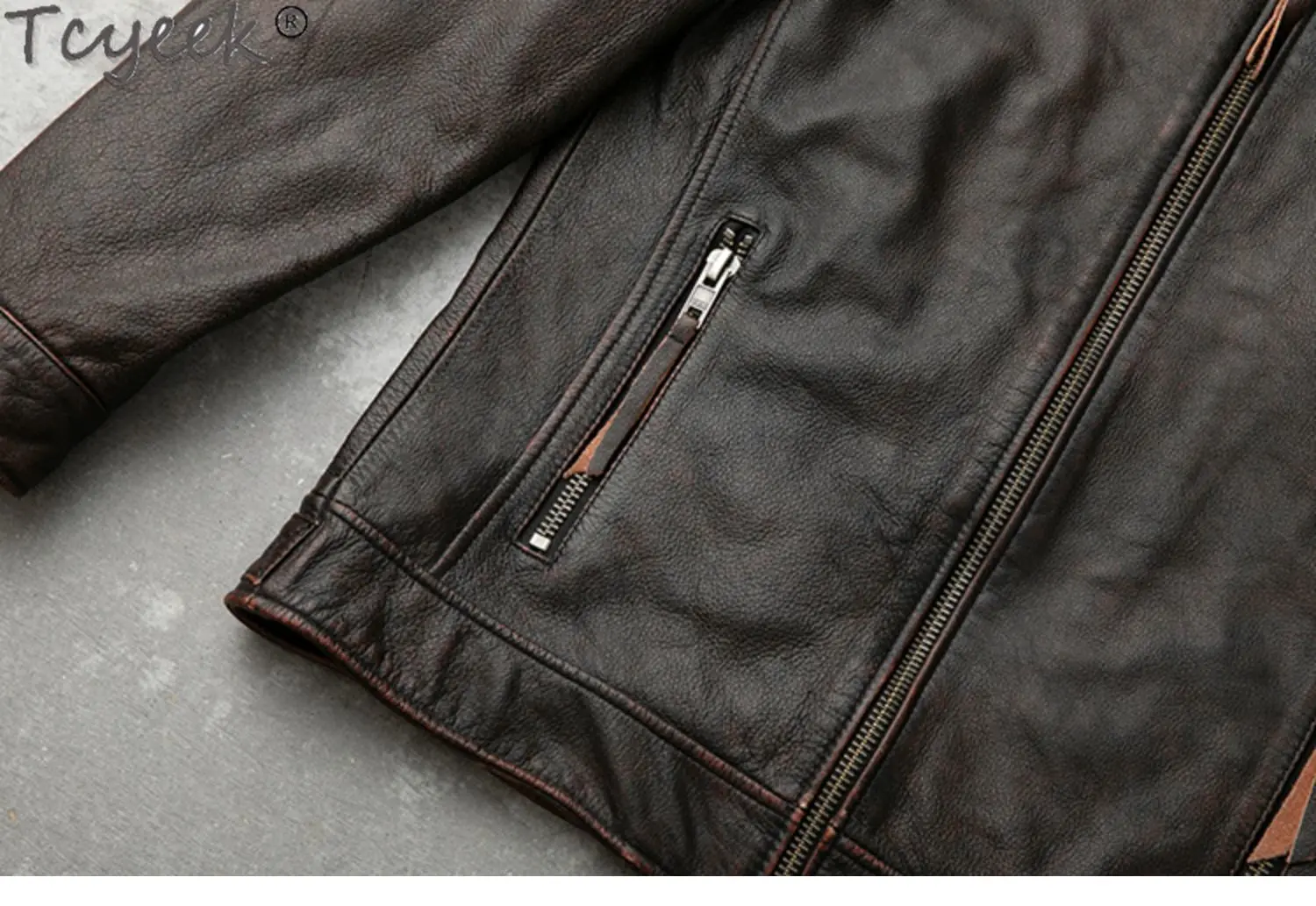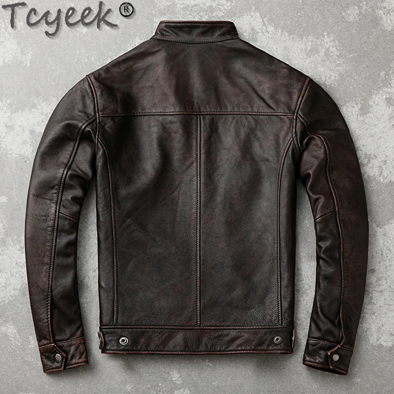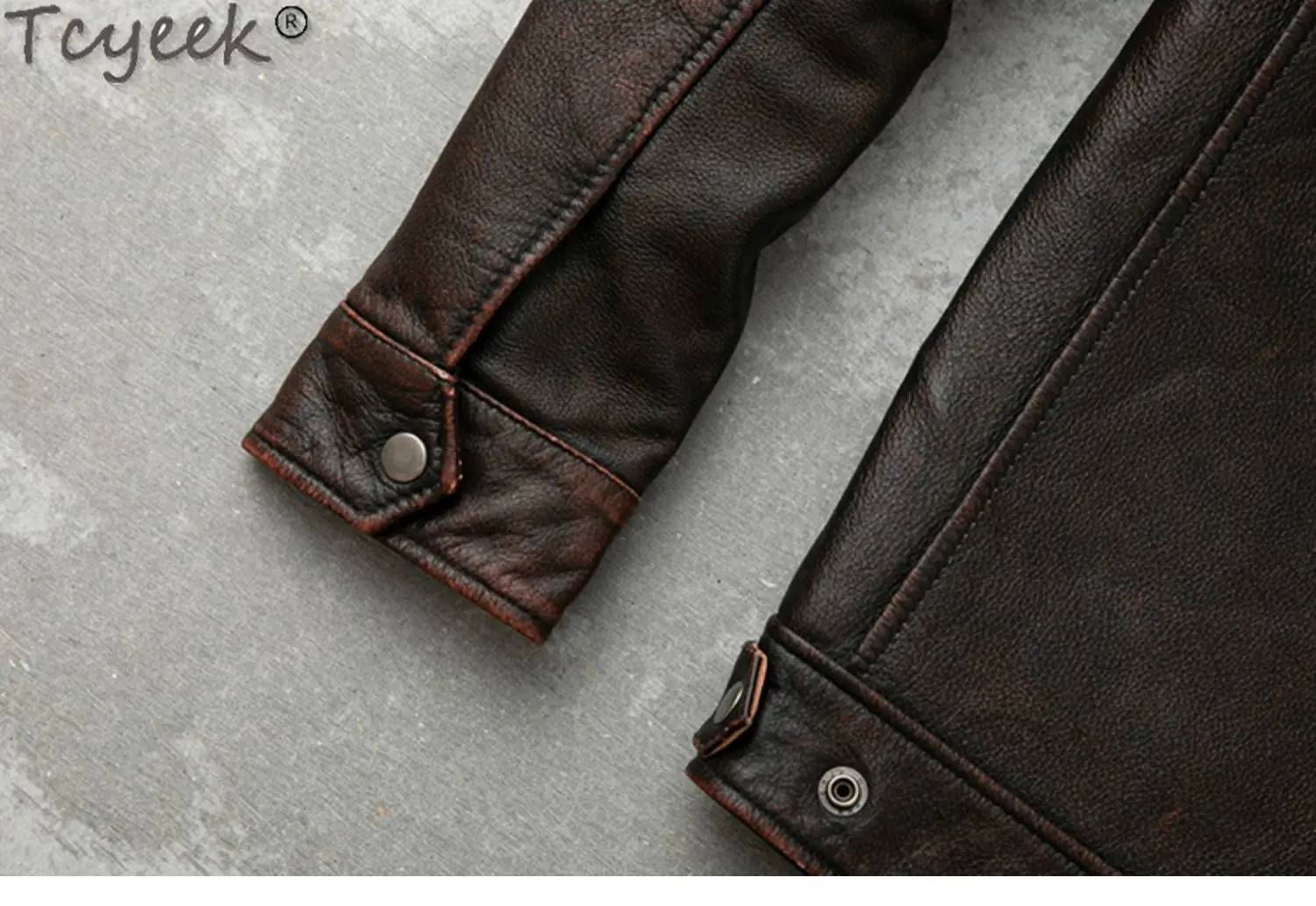 Tcyeek Giacca in vera pelle da uomo Strato superiore Cappotti in pelle di vacchetta Primavera Autunno Cappotto in pelle vintage Giacche da uomo Jaqueta Masculina