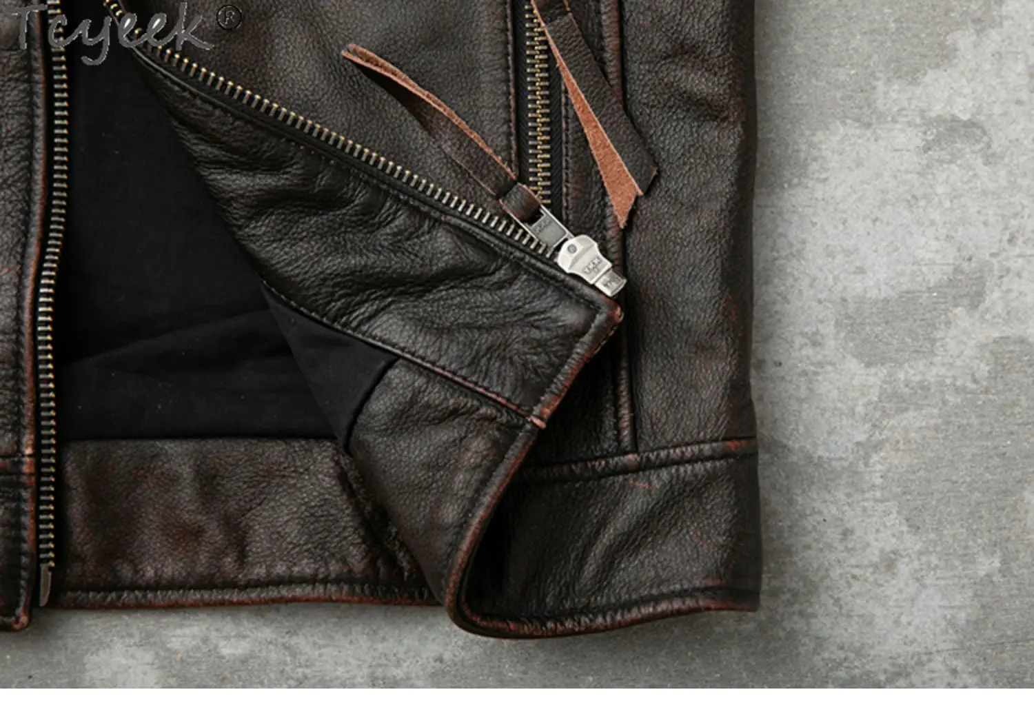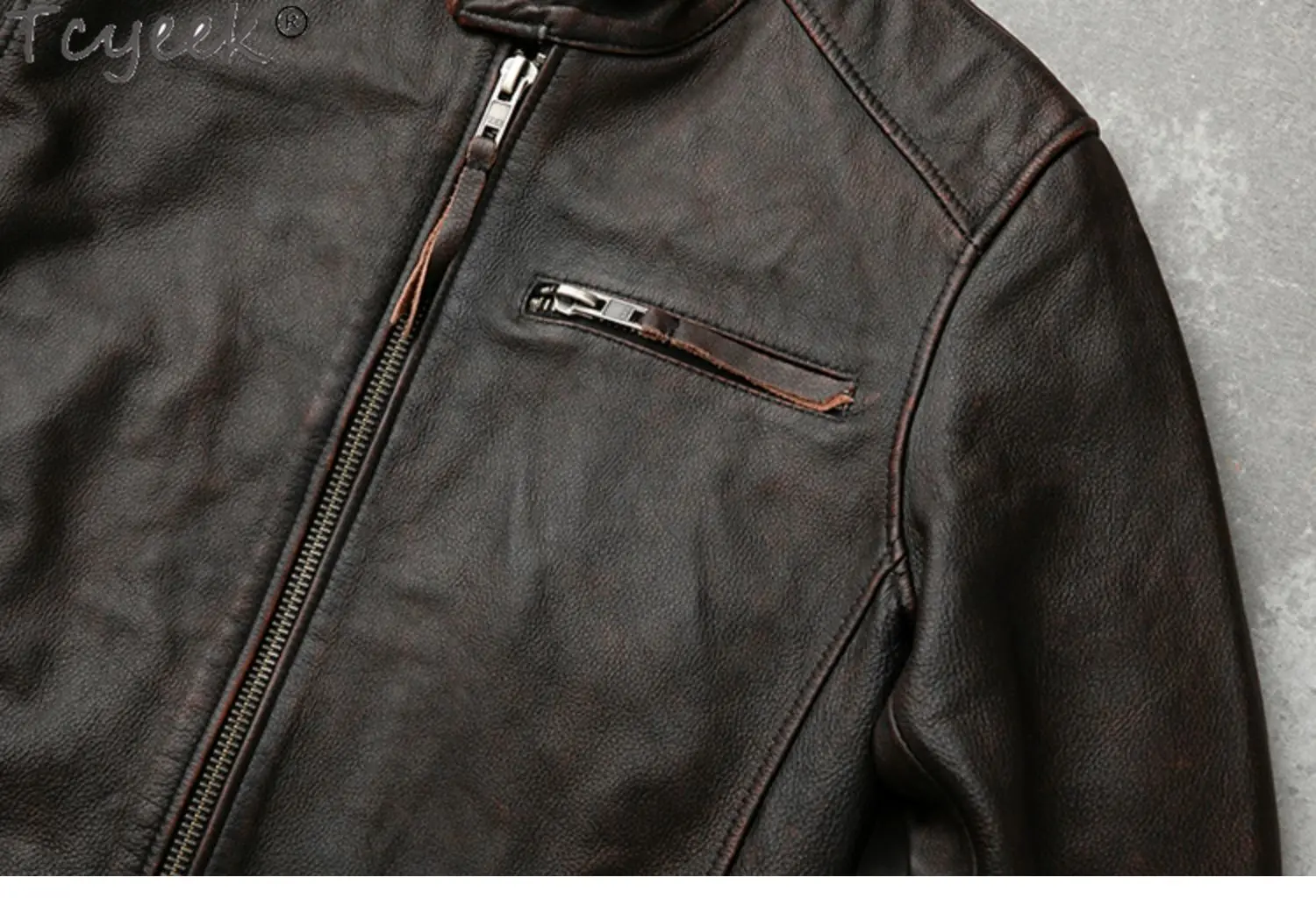 1 recensione per Tcyeek Giacca in vera pelle da uomo Strato superiore Cappotti in pelle di vacchetta Primavera Autunno Cappotto in pelle vintage Giacche da uomo Jaqueta Masculina