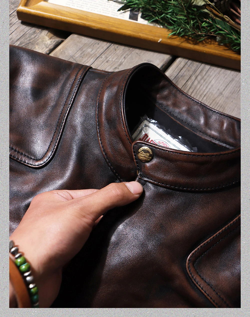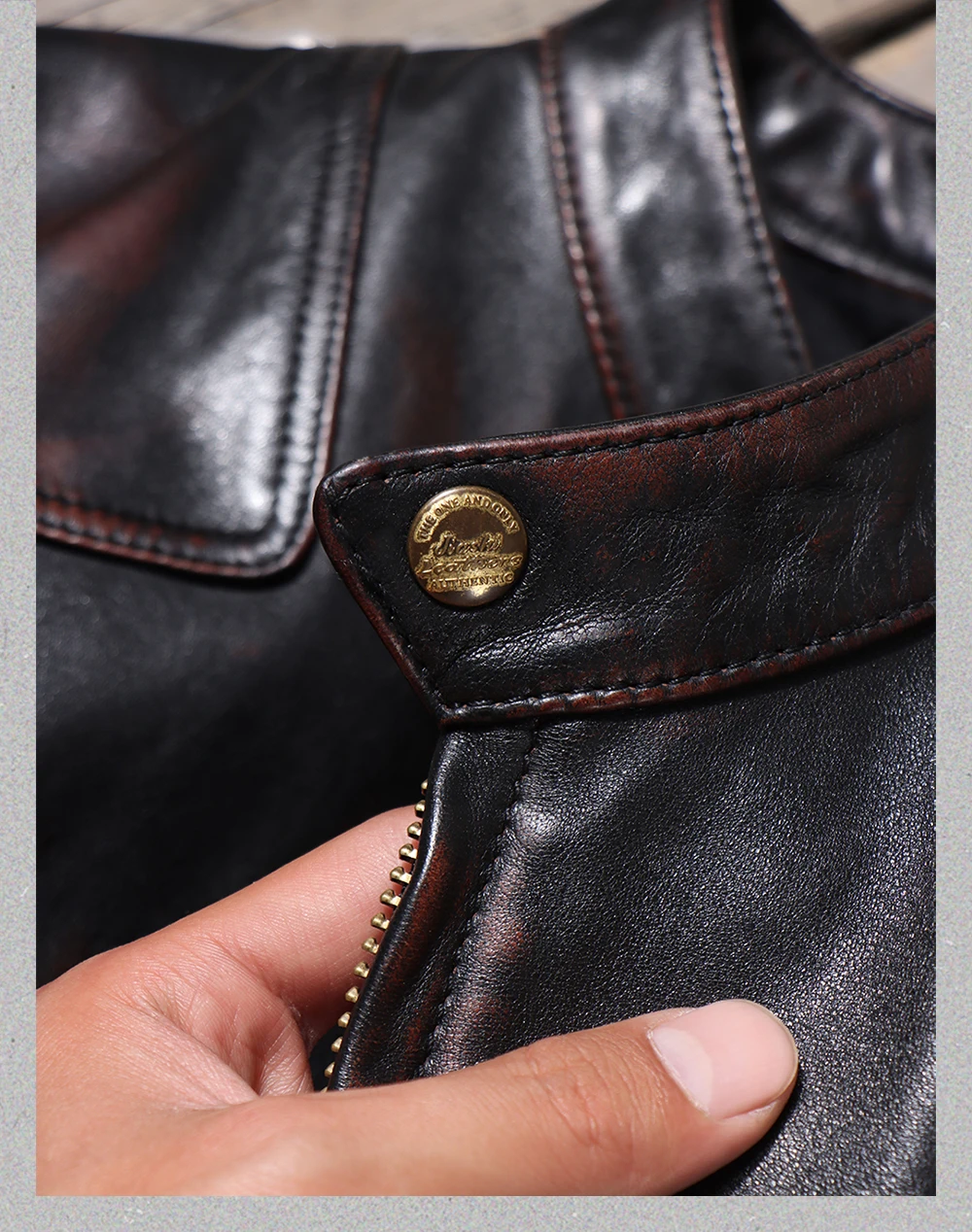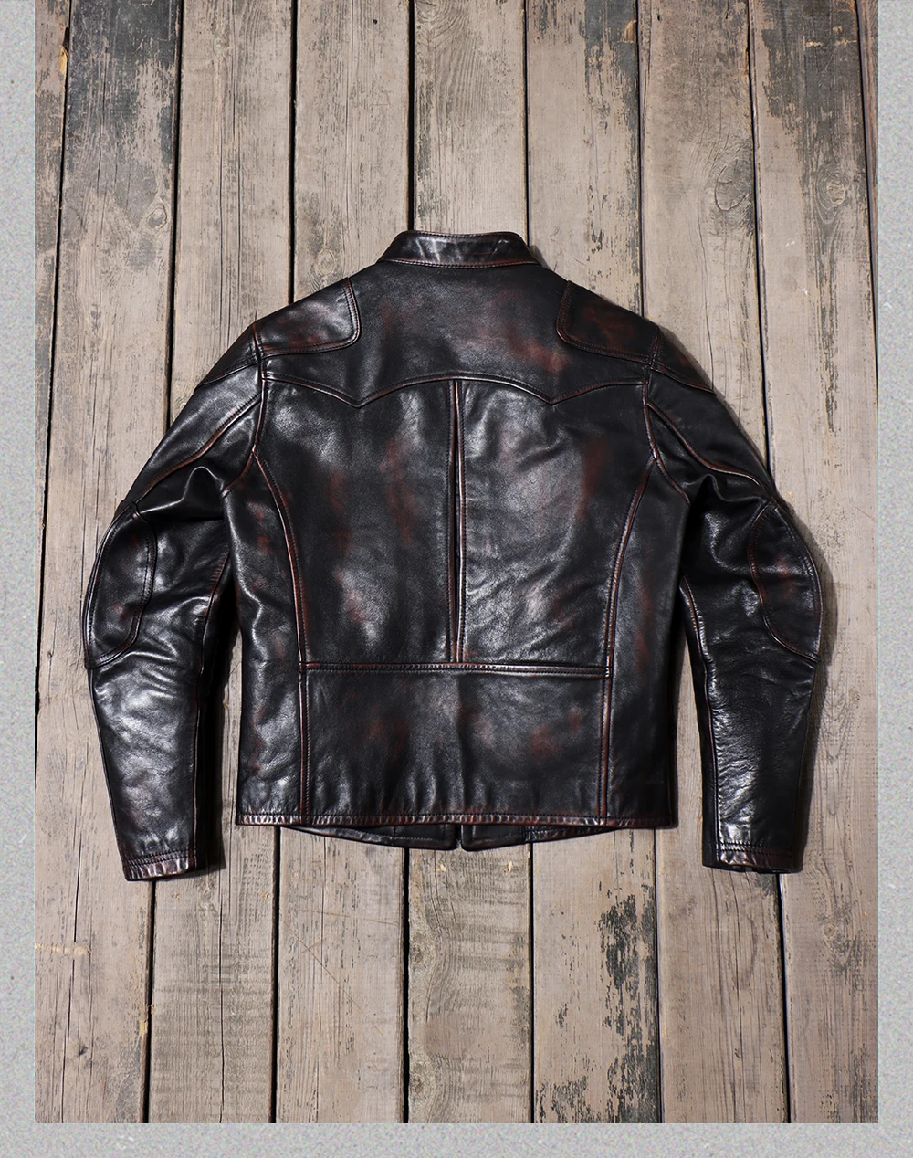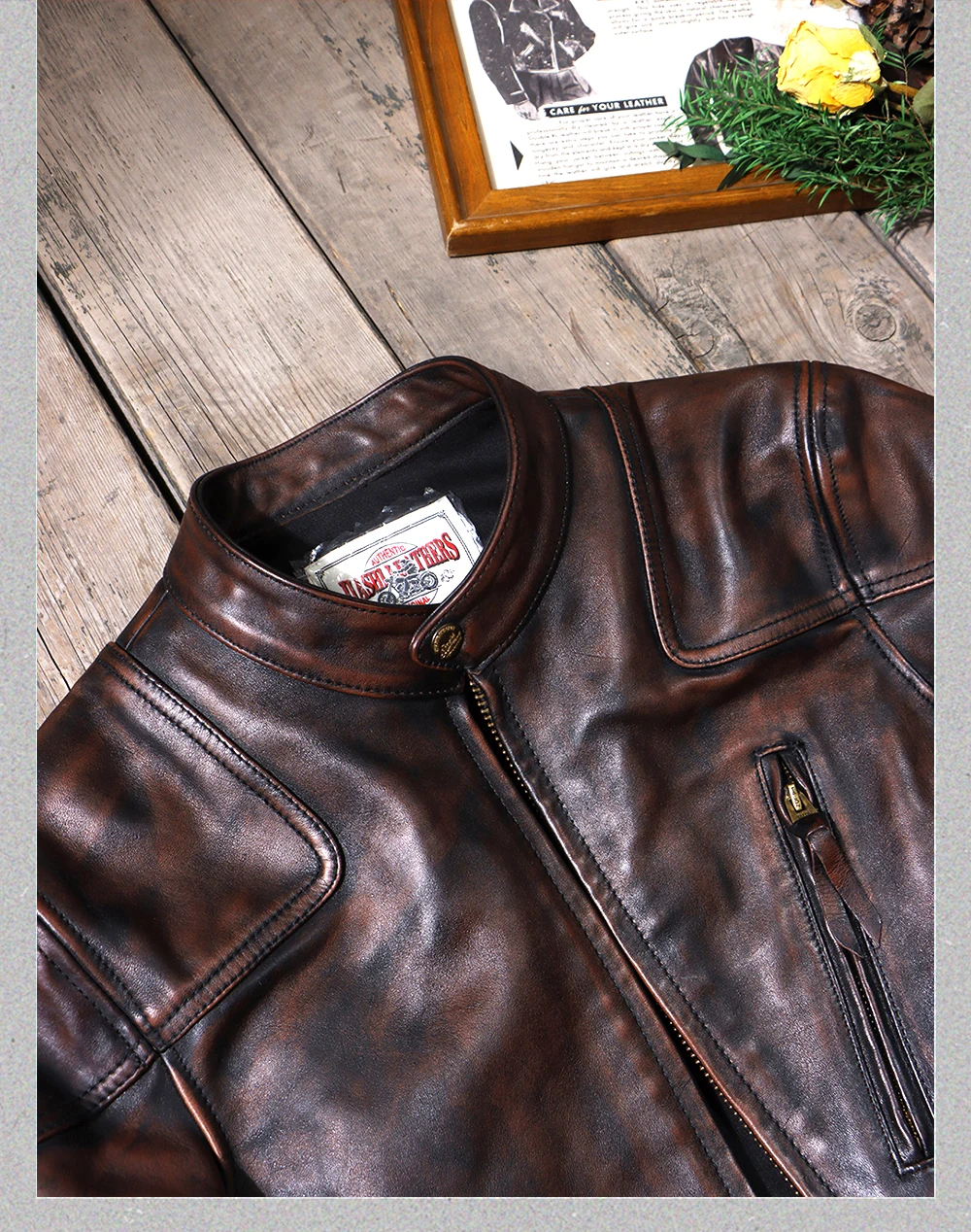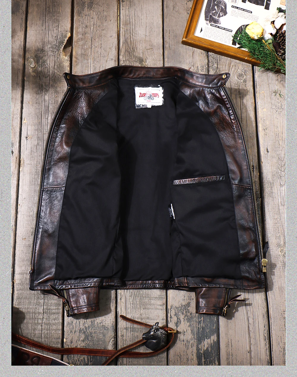 Tea Core Pelle di cavallo Venom Biker Lavaggio in pelle Distressed Tom Hardy Giacca classica in pelle da uomo vintage con colletto alla coreana