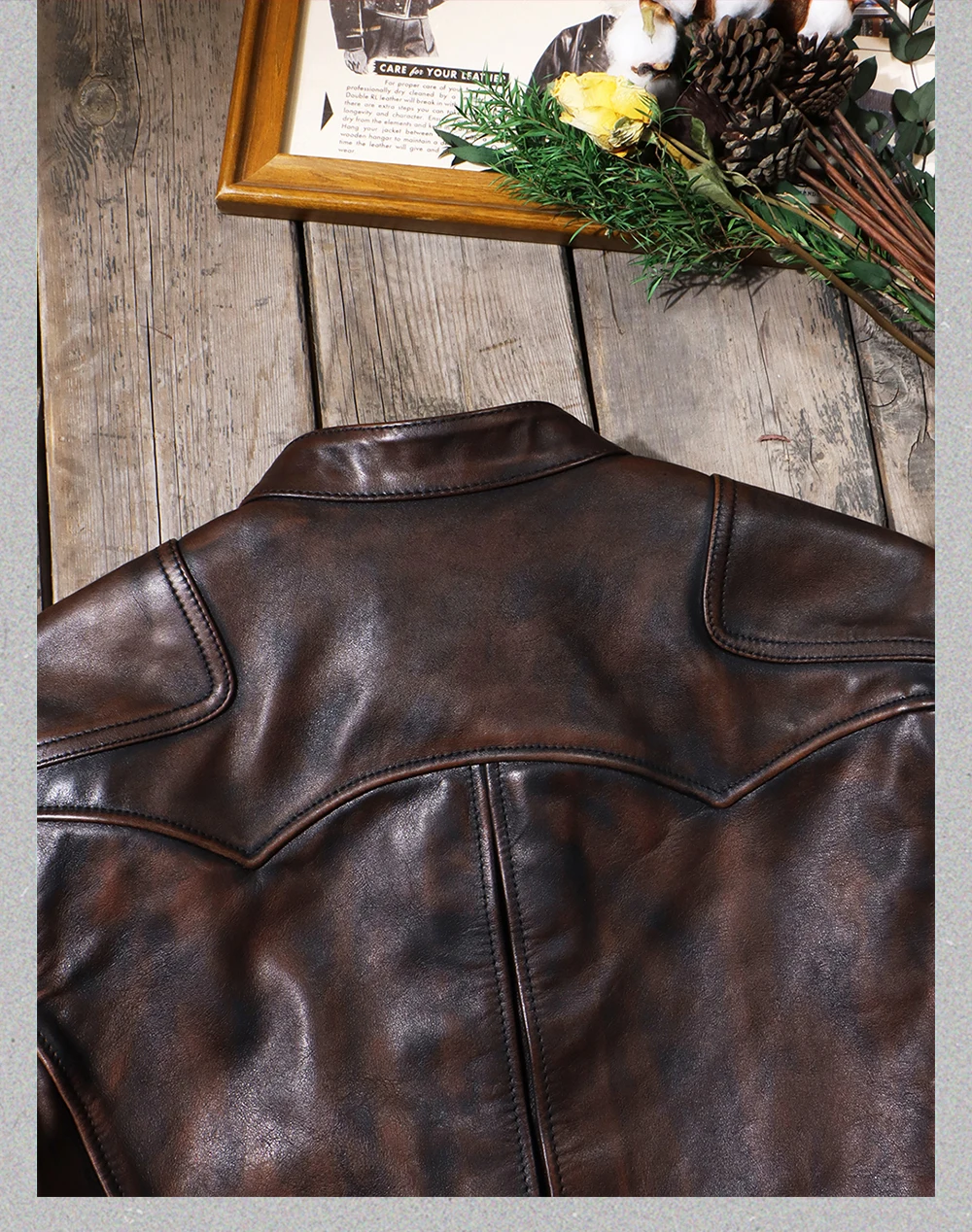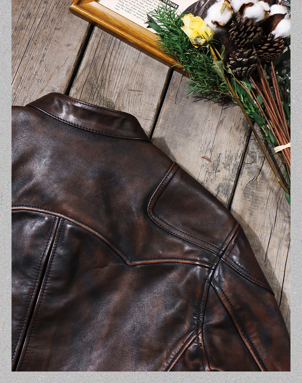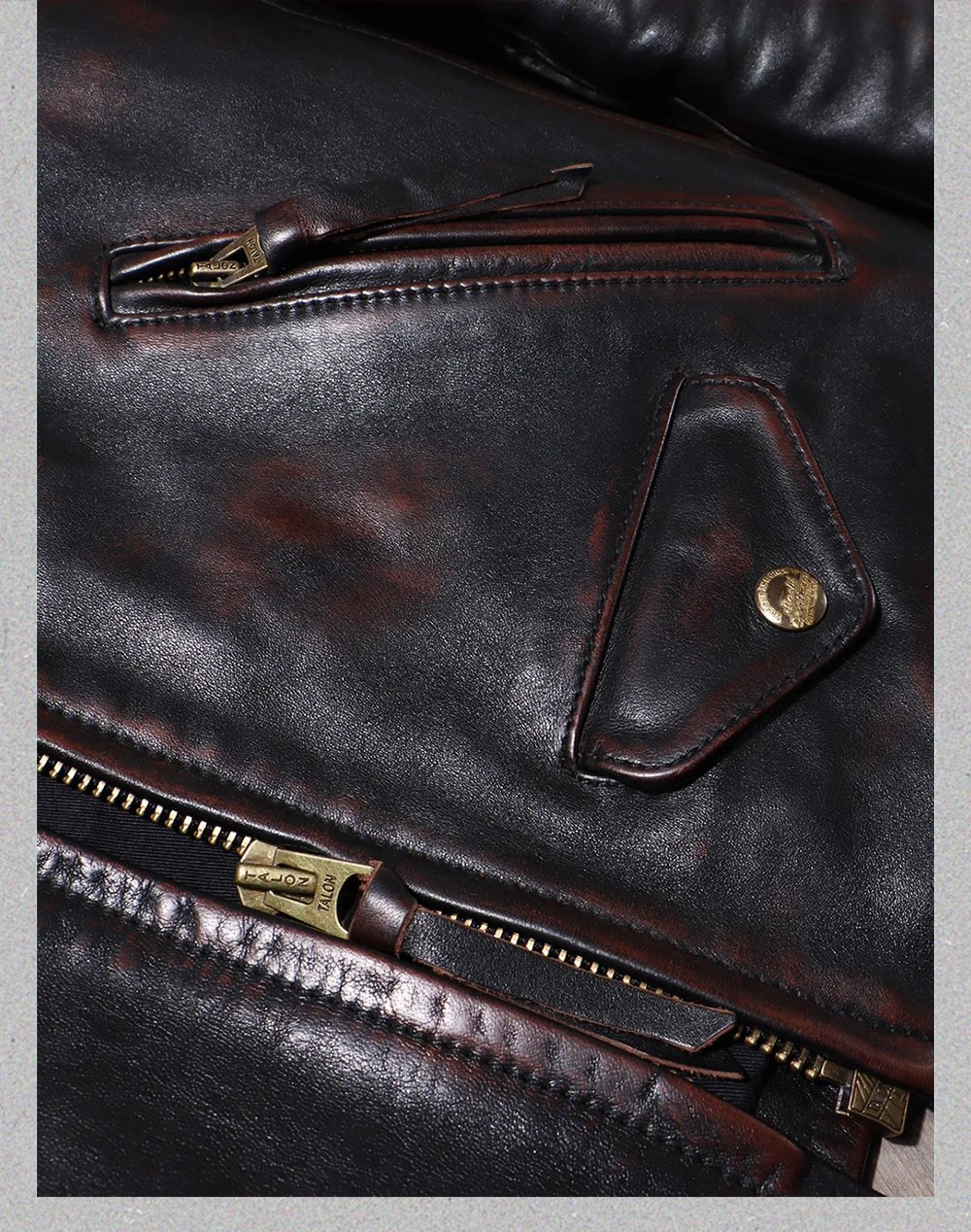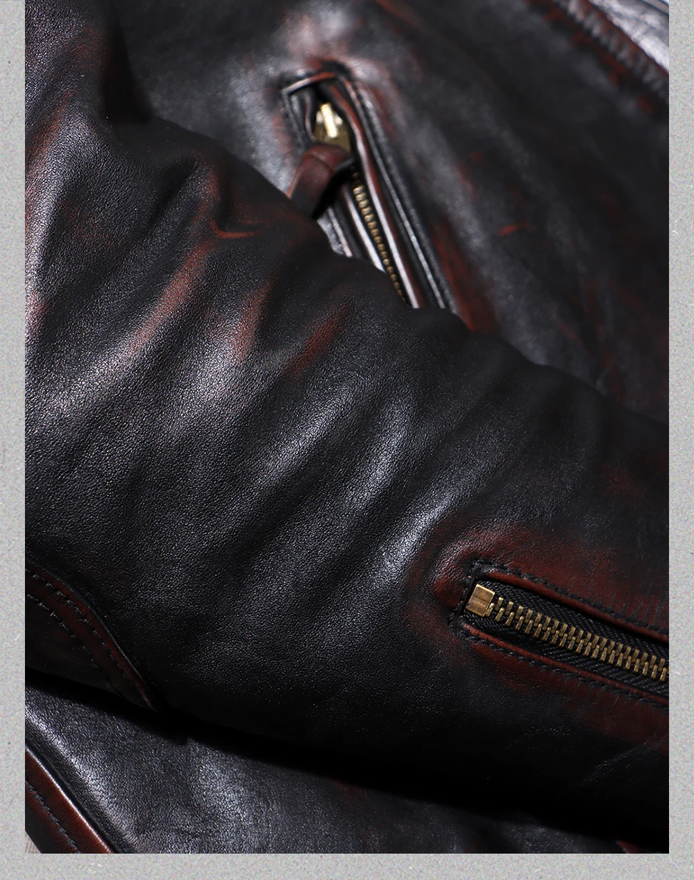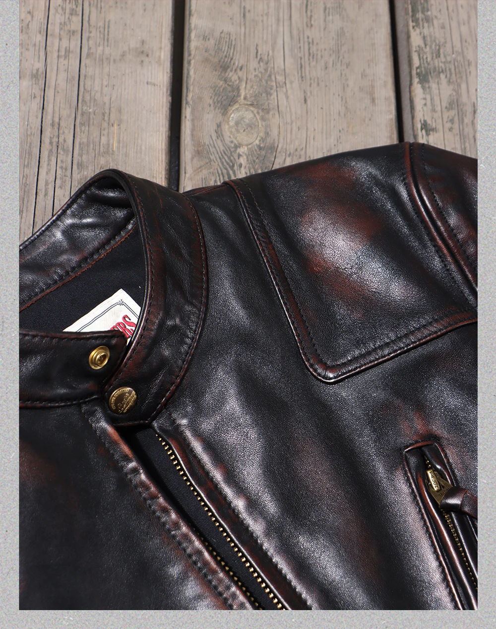 Tea Core Pelle di cavallo Venom Biker Lavaggio in pelle Distressed Tom Hardy Giacca classica in pelle da uomo vintage con colletto alla coreana
