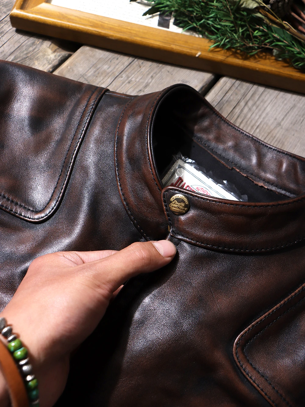 Tea Core Pelle di cavallo Venom Biker Lavaggio in pelle Distressed Tom Hardy Giacca classica in pelle da uomo vintage con colletto alla coreana