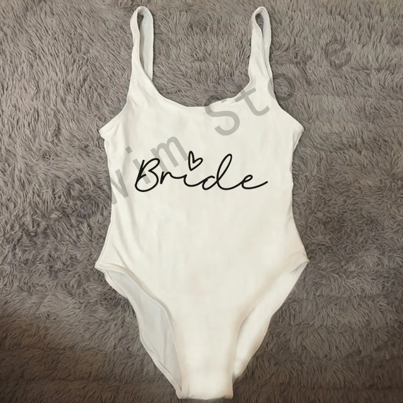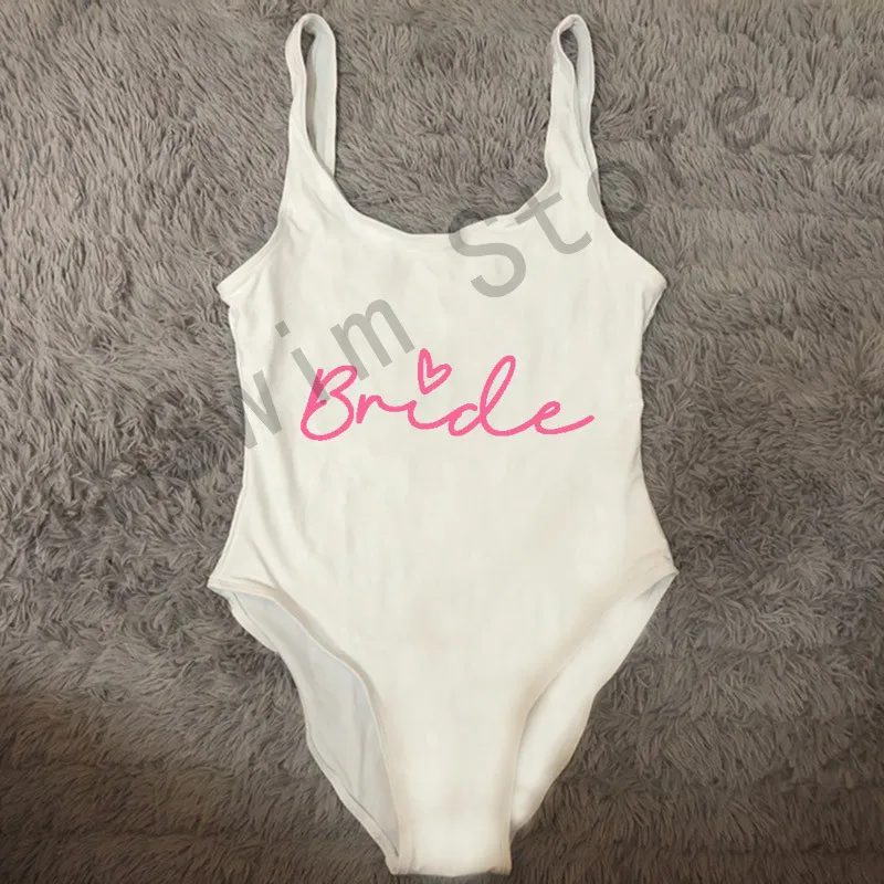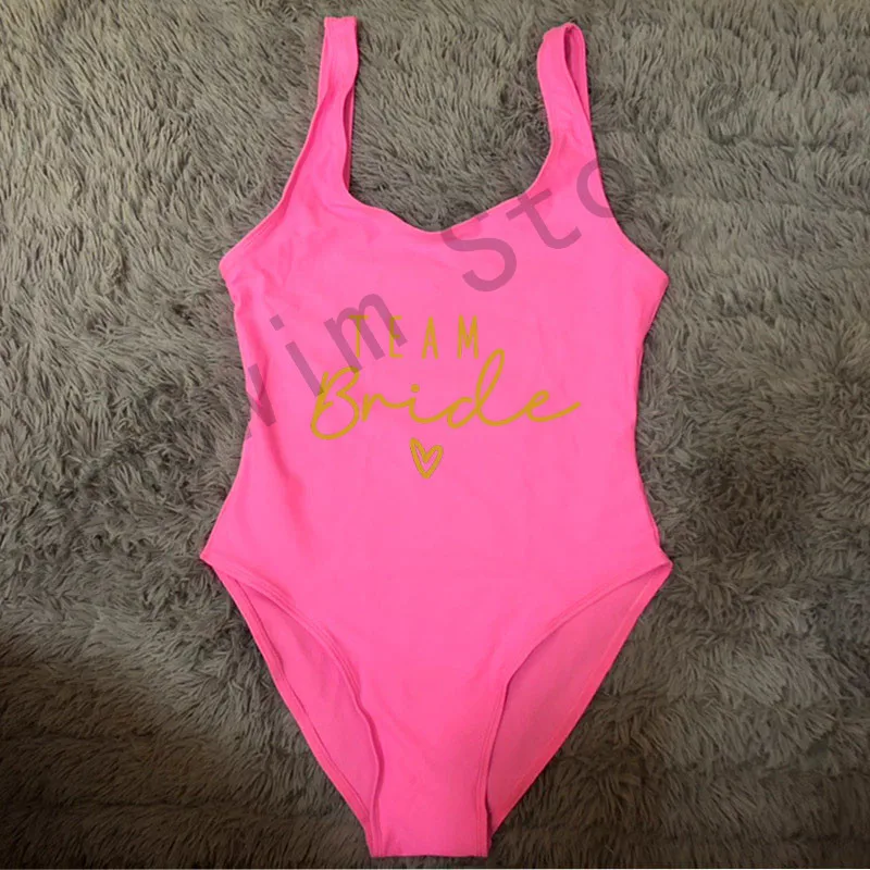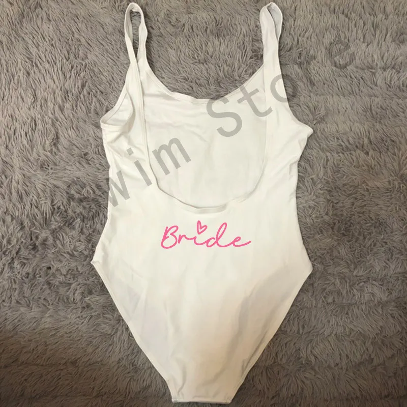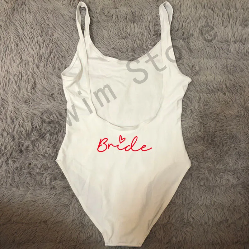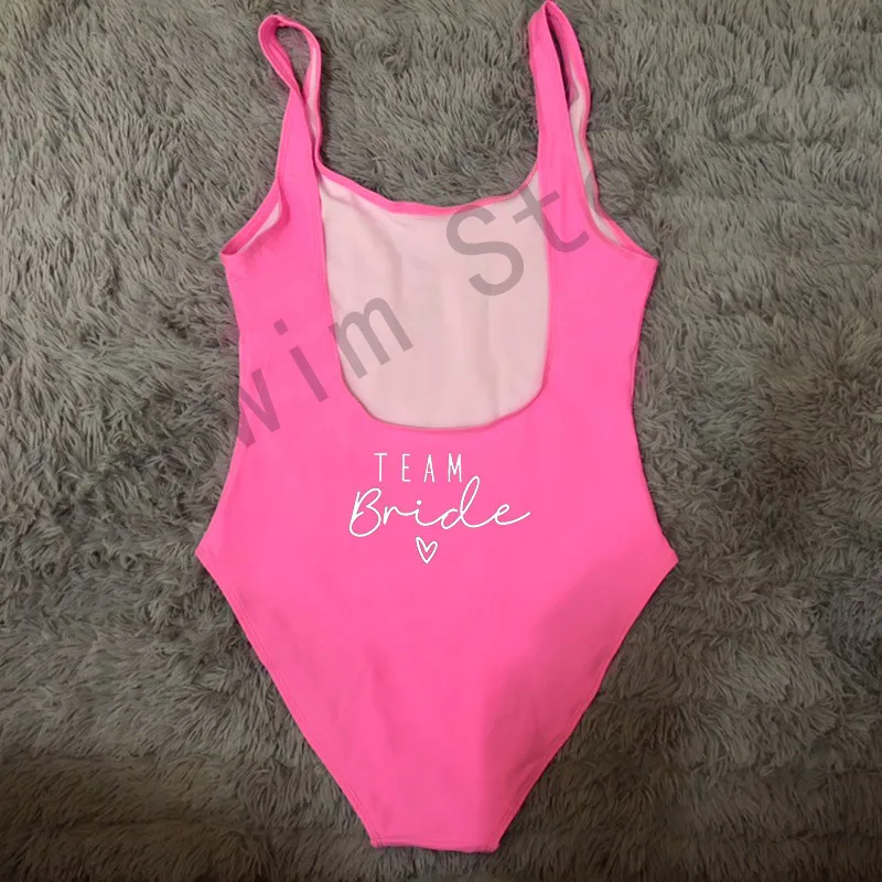 TEAM Bride Heart Print Costume intero da donna Costumi da bagno Taglio alto Schiena bassa Body sexy Costume da bagno per addio al celibato Nuoto