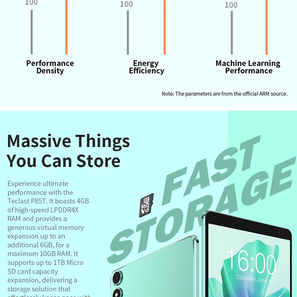 * I risultati dei test del laboratorio Teclast sono forniti solo come riferimento. I risultati effettivi possono variare a causa delle differenze negli ambienti delle versioni software e nelle versioni dei telefoni cellulari.