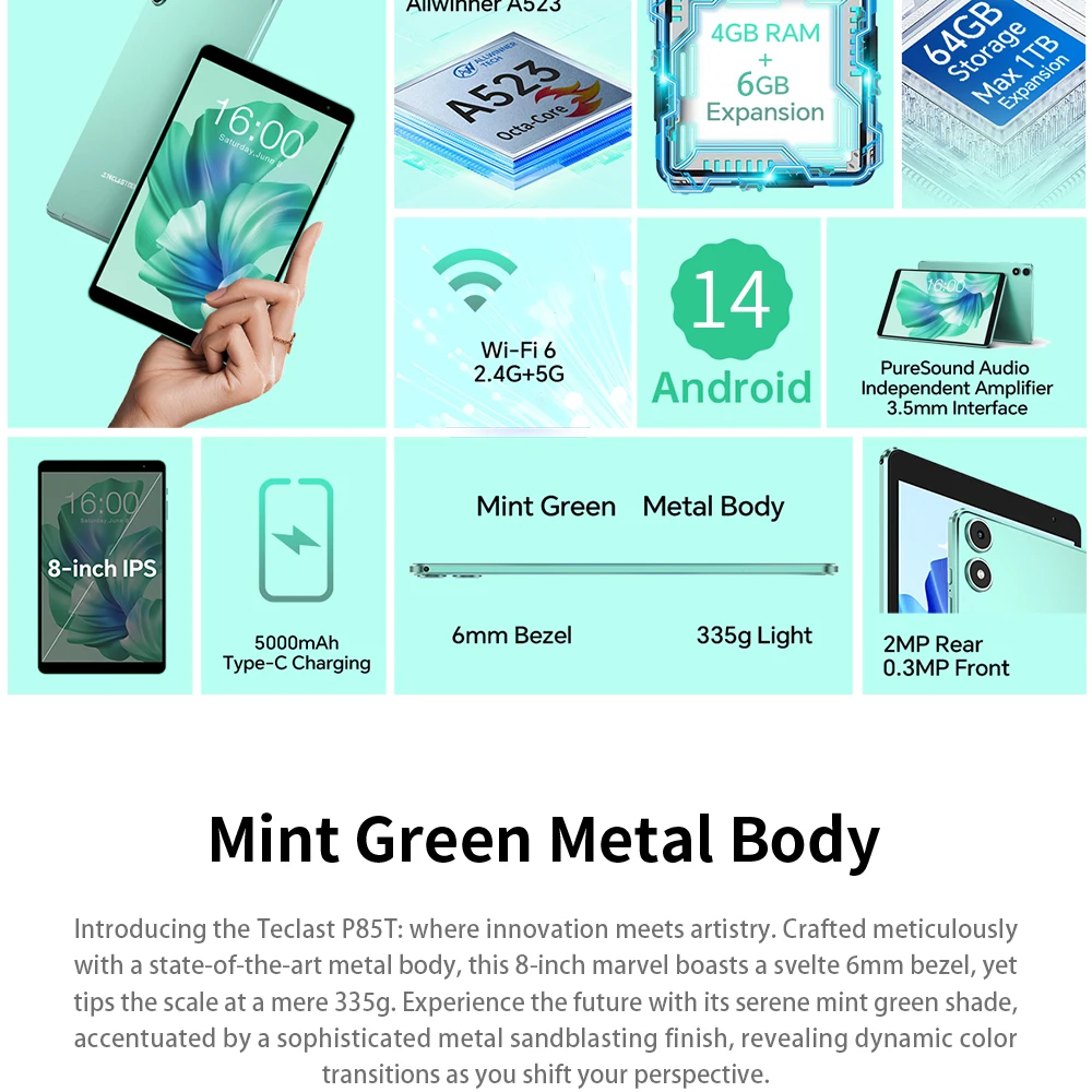 Dotato di un processore Allwinner A523 8-core, questo tablet garantisce prestazioni fluide ed efficienti.