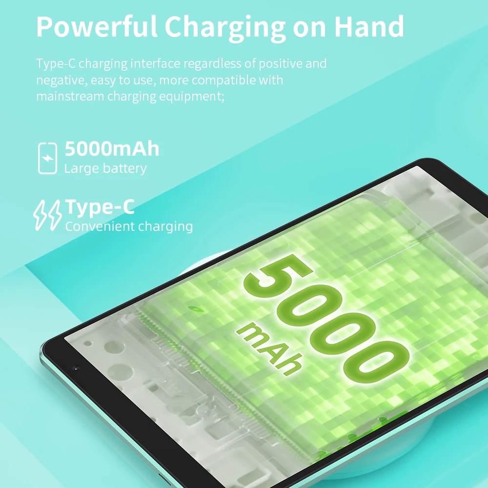 Alimentato da una batteria da 5000mAh, questo tablet promette lunghe ore di utilizzo senza frequenti ricariche.