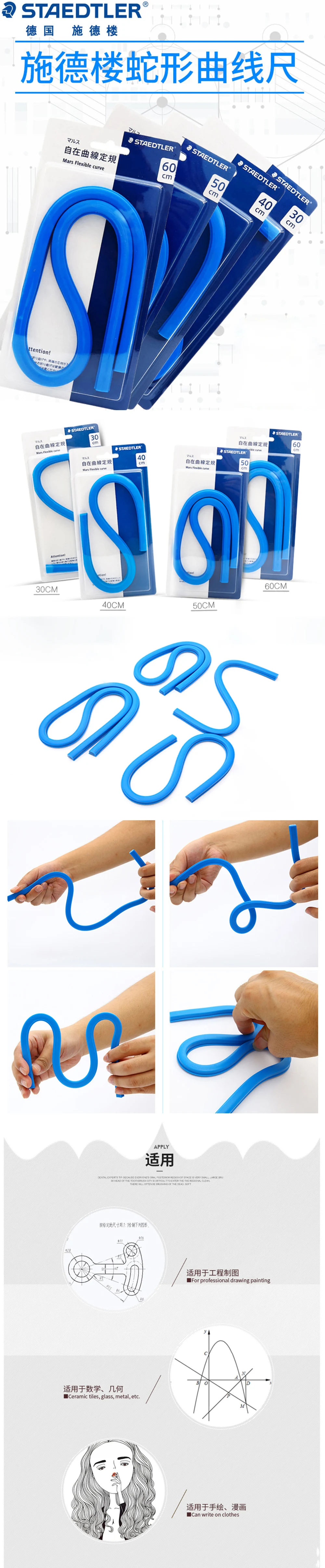 STAEDTLER tedesco righello morbido righello multifunzionale studente cancelleria dimensione strumento di misurazione disegno linea lunghezza righello 30/40/50/60 cm righello serpentino