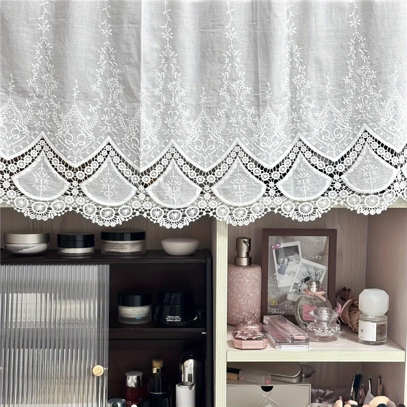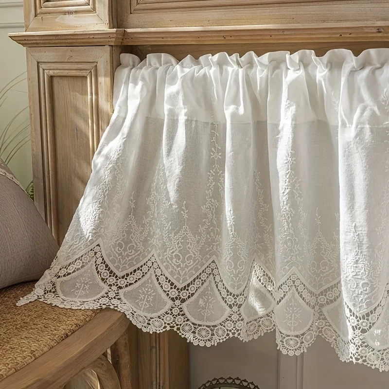 Tenda corta europea elegante in pizzo ricamato cavo Tenda da caffè in cotone chic bianco per porta della cucina, piccola finestra, decorazioni per la casa