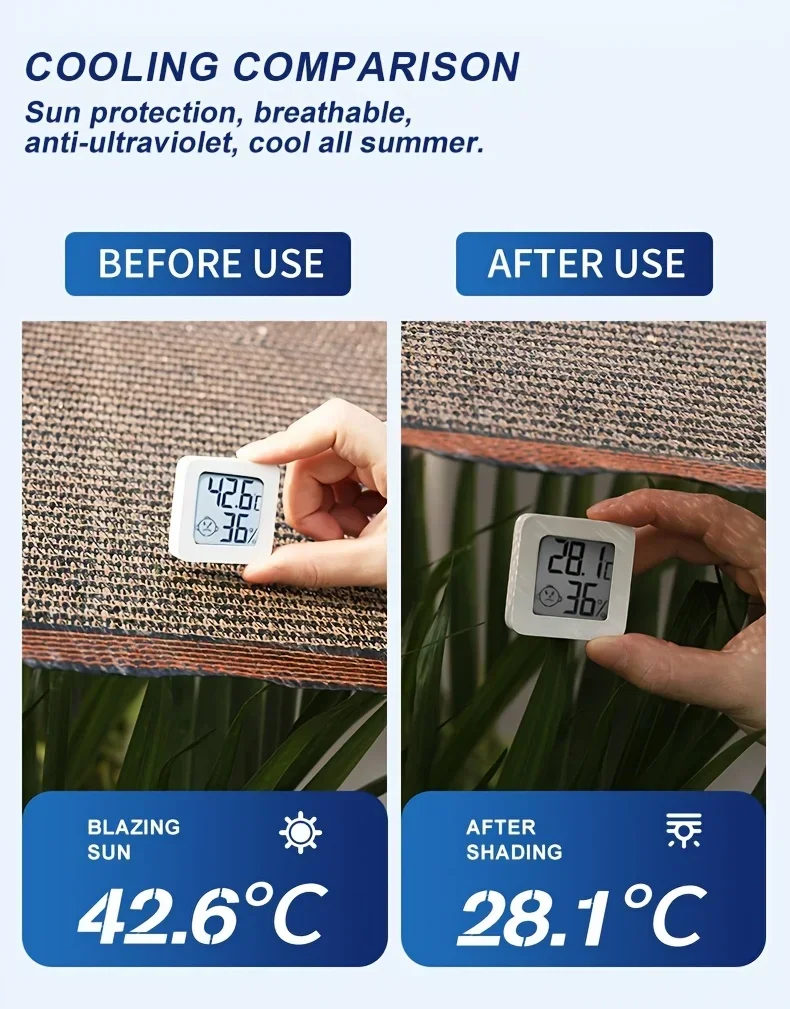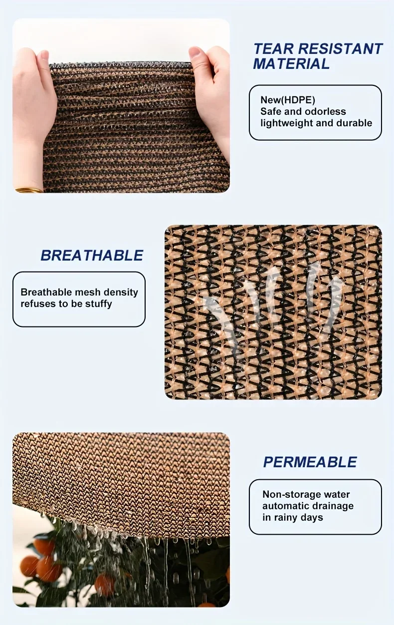 Traspirabilità: Cattura la sua velocità di schermatura della luce elevata di circa il 95%, il parasole mantiene l’eccellente traspirabilità dovuta al suo design a rete unico, consente la circolazione dell’aria e riduce il calore, creando un ambiente esterno fresco.
