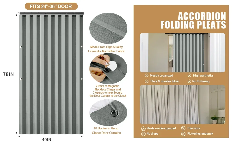 【Design unico】 tende divisorie combinate con le pieghe delle porte in fisarmonica combinano l’eleganza e la durata con l’economia e facilità dell’installazione delle tende delle porte in tessuto per aggiungere una grande bellezza e il comfort alla tua vita.