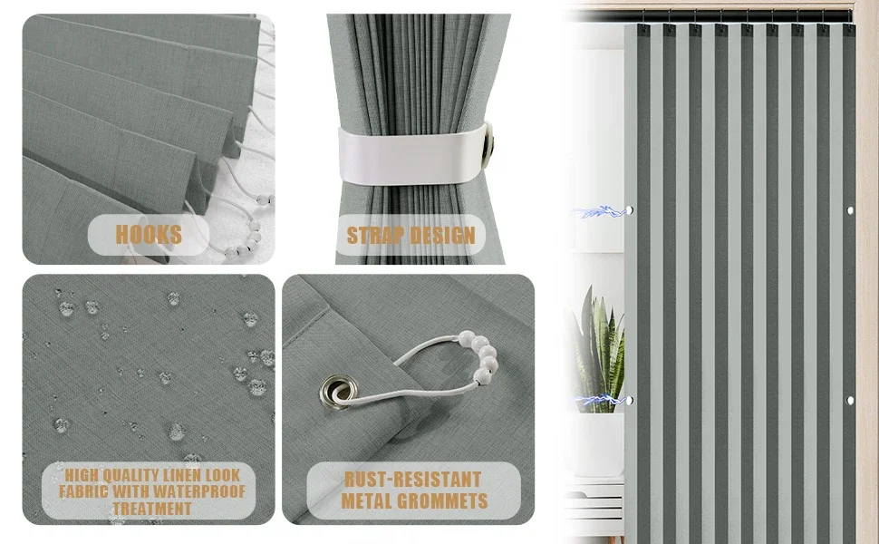 Contenuto del pacchetto】1 pannello per tende con anelli in corda metallica, 1 fascetta regolabile e 21 ganci antiruggine, ideale per la maggior parte delle tende decorative (tangette non incluse).