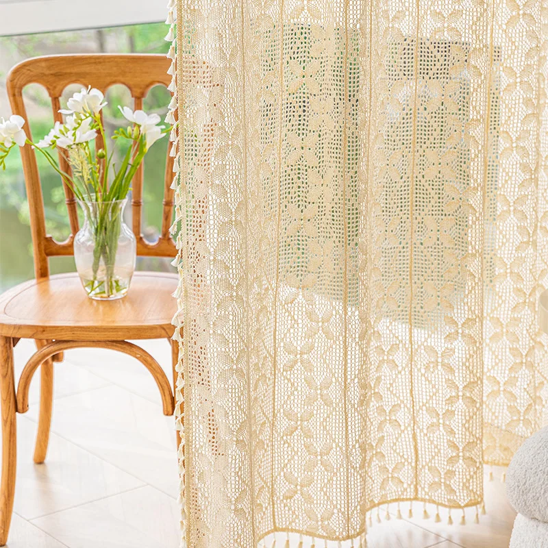 Tenda all’uncinetto Tende da soggiorno traslucide Boho Chic Tende per finestre lavorate a maglia all’uncinetto Tenda traslucida per camera da letto