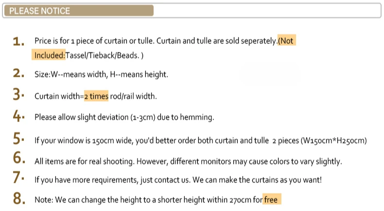 L’altezza può essere accorciata gratuitamente entro 270 cm in base alle tue esigenze