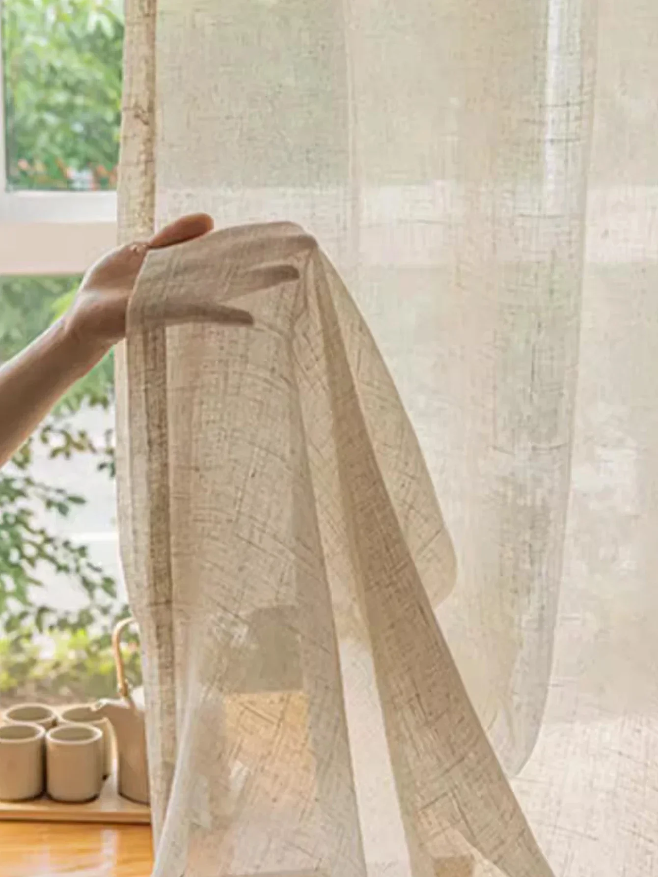Tende traslucide con texture in cotone e lino per camera da letto, soggiorno, con protezione UV, tenda velata per finestre, filato personalizzato