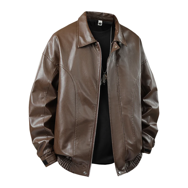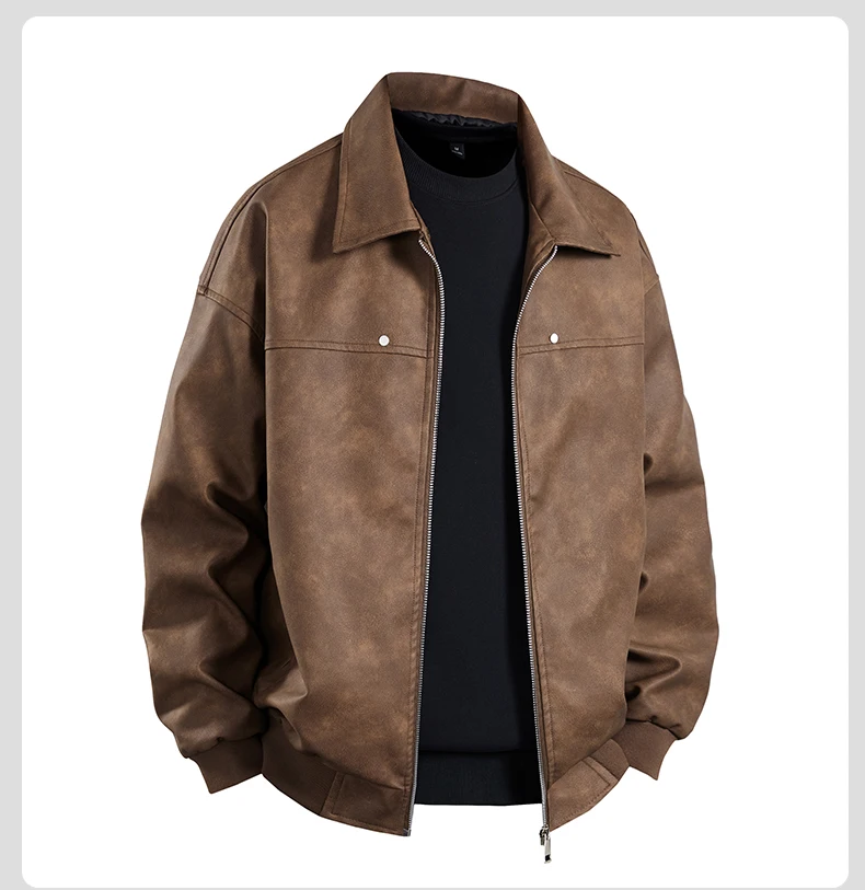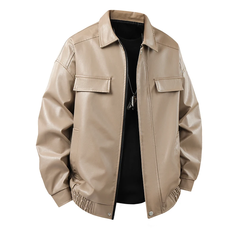 Tendenza moda uomo Autunno Inverno Outdoor Giacca in similpelle di alta qualità Comoda giacca in pelle con colletto rialzato