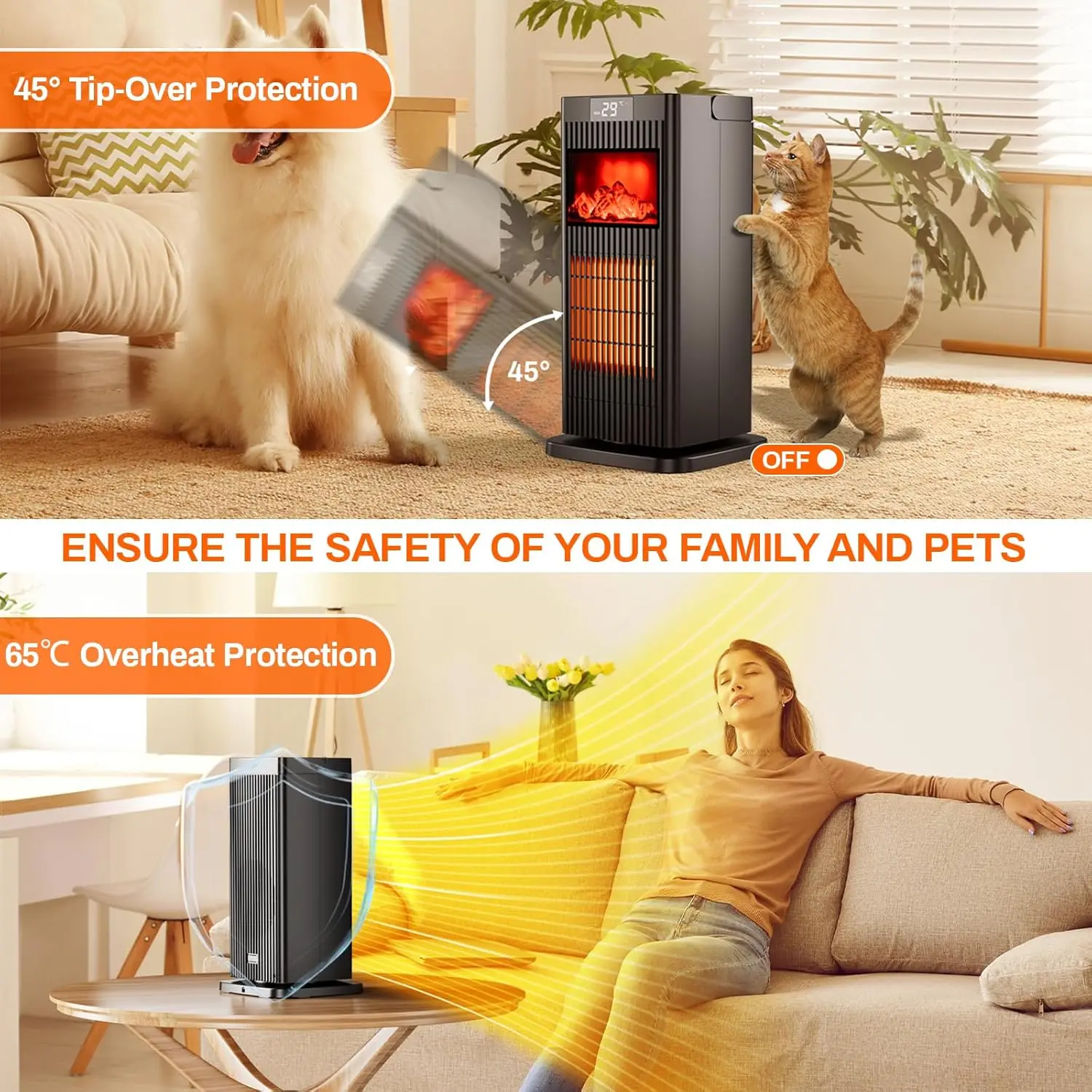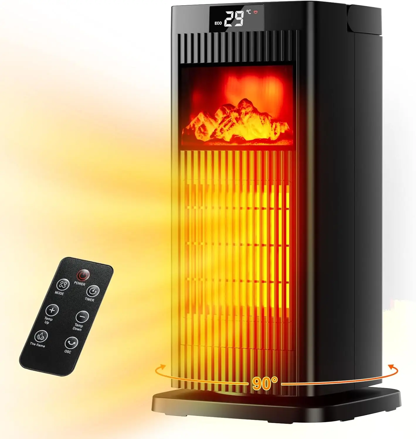 Termoventilatore, stufa elettrica da 1500 W con luce di fiamma 3D, 4 modalità, telecomando, protezione da surriscaldamento e inclinazione