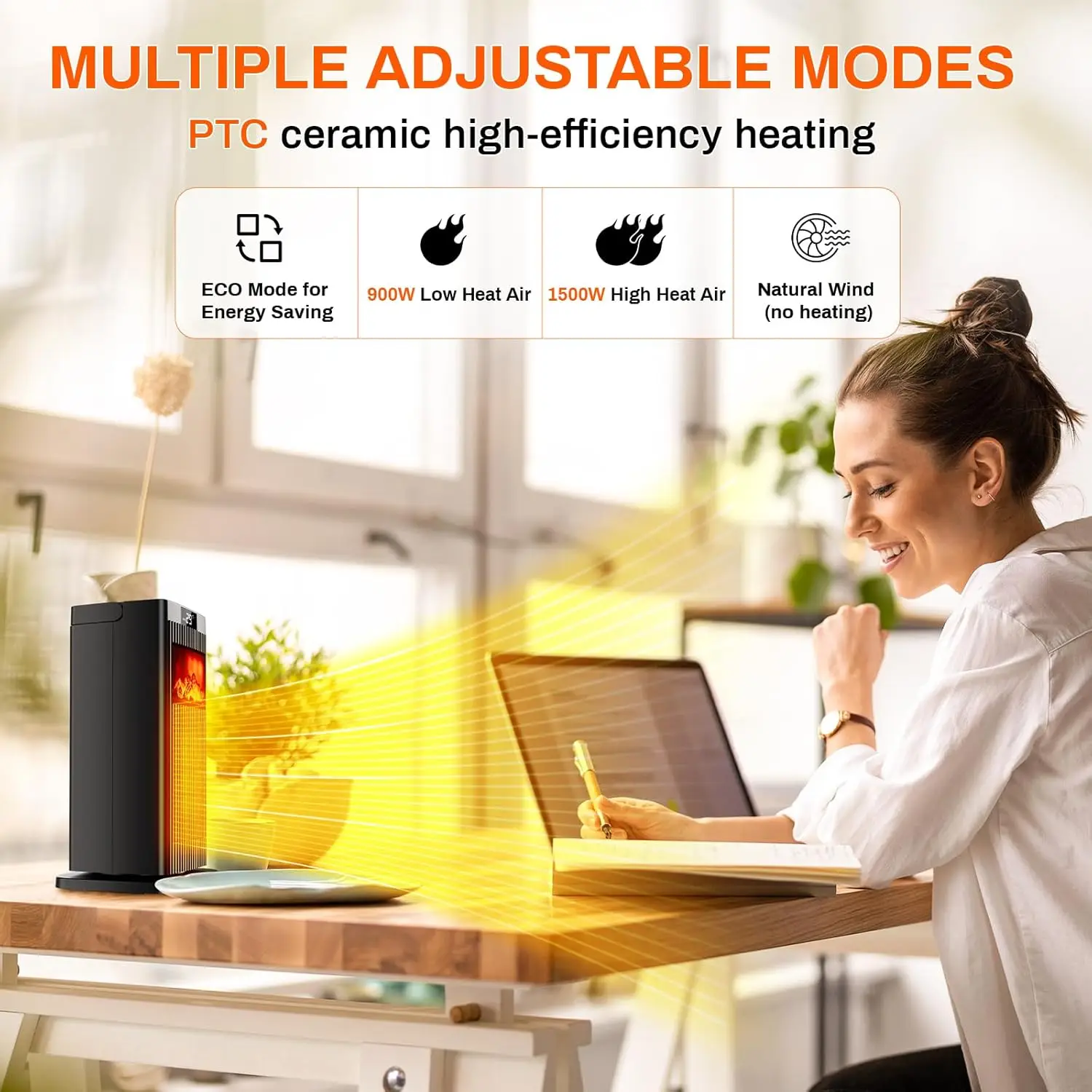 Riscaldamento rapido e silenzioso: con un potere di uscita di 1500 W, può riscaldare una stanza di 15 metri quadrati – 22 metri quadrati in un periodo molto breve.90°.Il altalena distribuisce riscalda uniformemente in tutta la stanza e corre in modo fluido e tranquillamente.
