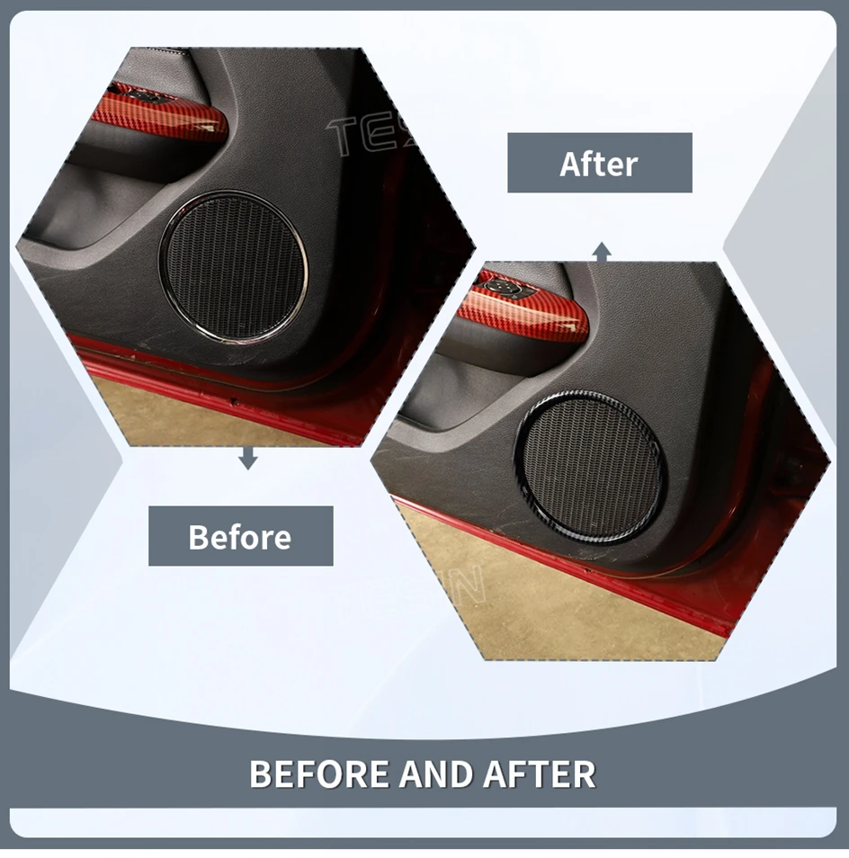 TESIN ABS Fibra di Carbonio Auto Interni Porta Audio Altoparlante Decorazione Copertura Accessori per Ford Mustang 2015-2020 2021 202223Avviso:Perché lo stesso modello di auto può essere prodotto in modo diverso in paesi diversi.Assicurati che la parte della tua auto sia come quella mostrata nella nostra immagine, altrimenti non si adatta, in caso di differenza, ti preghiamo di contattarci prima dell’acquisto, grazie!Specifica:1.Modello auto: per Ford Mustang 2015 2016 2017 2018 2019 2020 2021 2022 2023 in poi2.Materiale: realizzato in materiale ABS di alta qualità, elevata durezza, resistente, durevole, può essere utilizzato nella maggior parte degli ambienti.3.Peso netto: 20 g4.Il pacchetto include: 2 pezzi per set5.100% nuovo di zecca con alta qualità6.Decora la tua auto affascinante, lusso vividoCaratteristiche:1.I dati originali dell’auto vengono aperti e le dimensioni sono precise e coerenti.2.Il materiale ABS ha un’eccellente resistenza all’usura, una buona stabilità dimensionale e resistenza all’olio.3.100% nuovo di zecca con alta qualità, migliora efficacemente il senso della moda nell’auto originale.4.Facile da installare.può essere fissato saldamente e non è facile cadere.Smontaggio senza lasciare tracce.Altro:1. Abbiamo una fabbrica di prodotti professionali, ci concentriamo sugli accessori per la modifica dell’auto, modificati one-stop.2.Se fai dropshipping o vendita all’ingrosso, puoi contattarci direttamente, ti forniremo servizi professionali e prezzi ragionevoli.